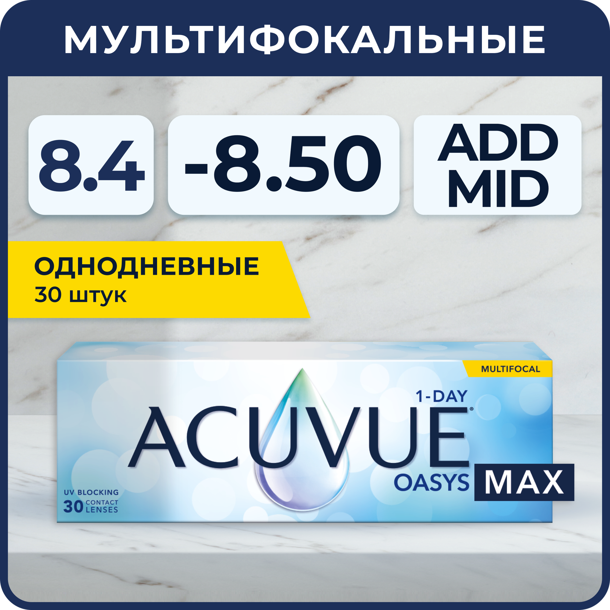 Контактные линзы ACUVUE OASYS MAX 1-DAY MULTIFOCAL, 30 шт / 8.4 / -9.00 / Mid