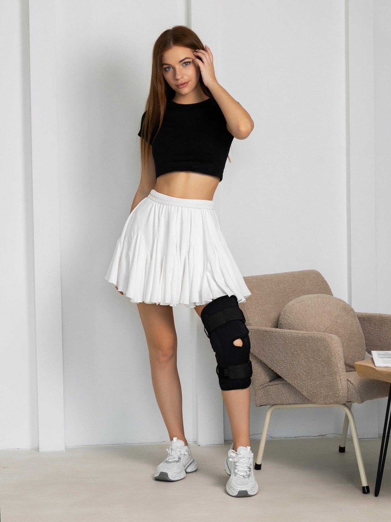 | Плюсы: | Отлично фиксирует чашечку, не пережимает ногу из-за универсального размера, надежные липучки |