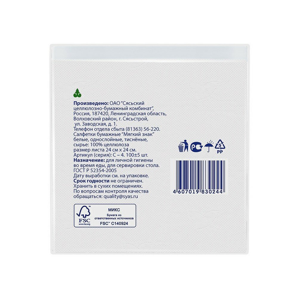 Салфетки Мягкий знак однослойные, 100 шт. интересное:
