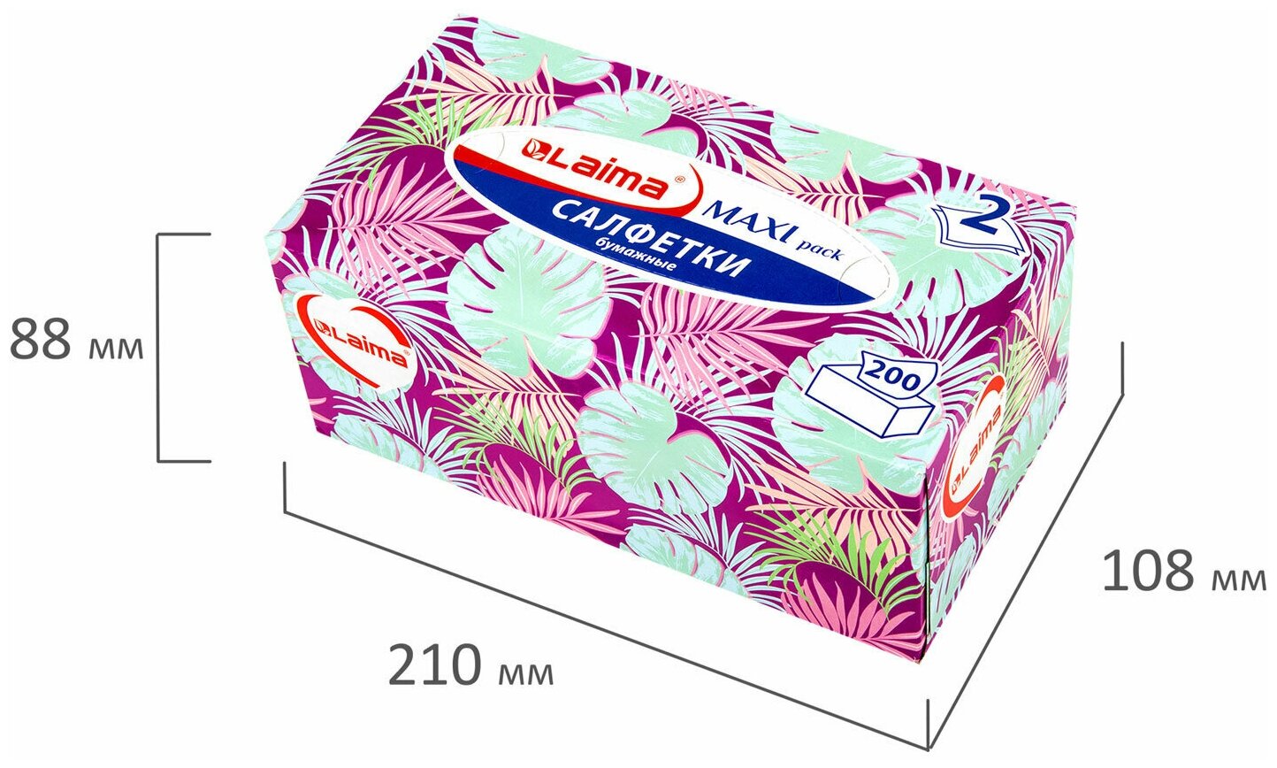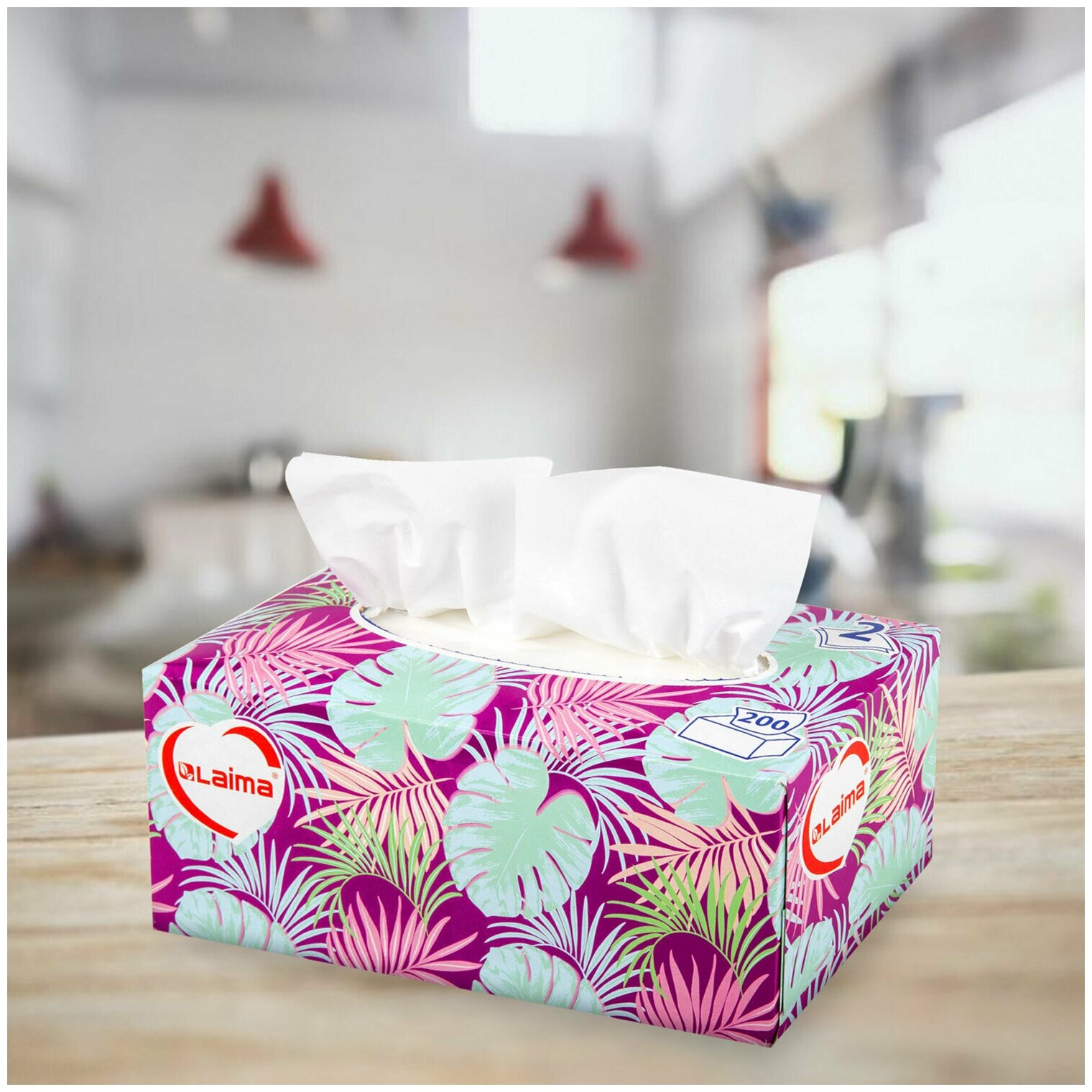 Салфетки / платочки бумажные сухие белые косметические в коробке для лица 200 штук, 2-слойные, Laima Everyday, 20х20 см