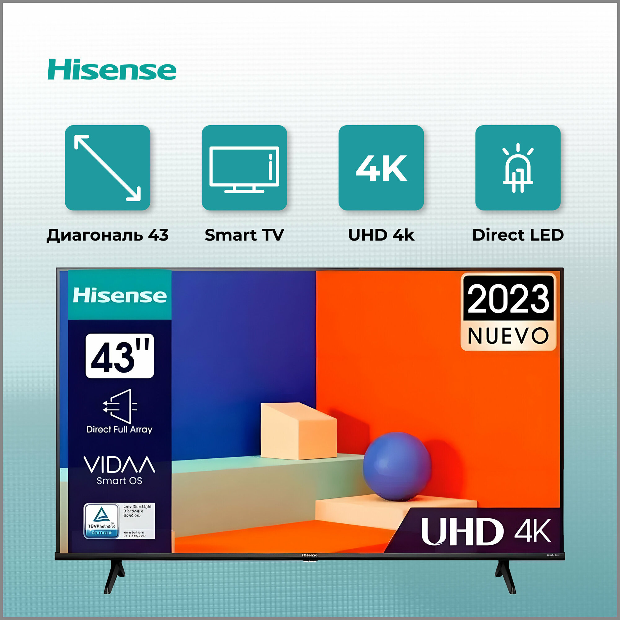 Телевизор Hisense 43A6K 43 дюйма со Смарт ТВ и голосовым управлением, 4К UHD