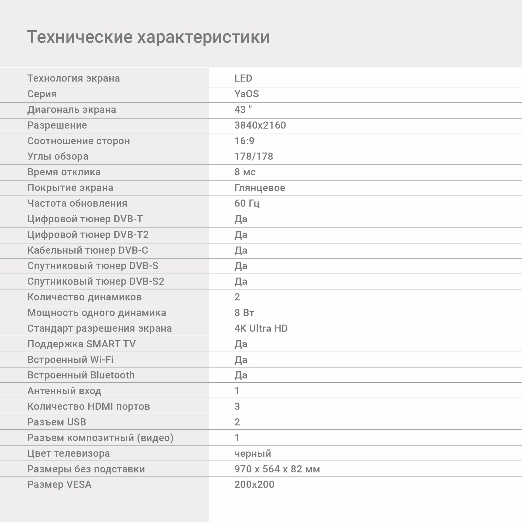 | Платформа Smart TV | YaOS |