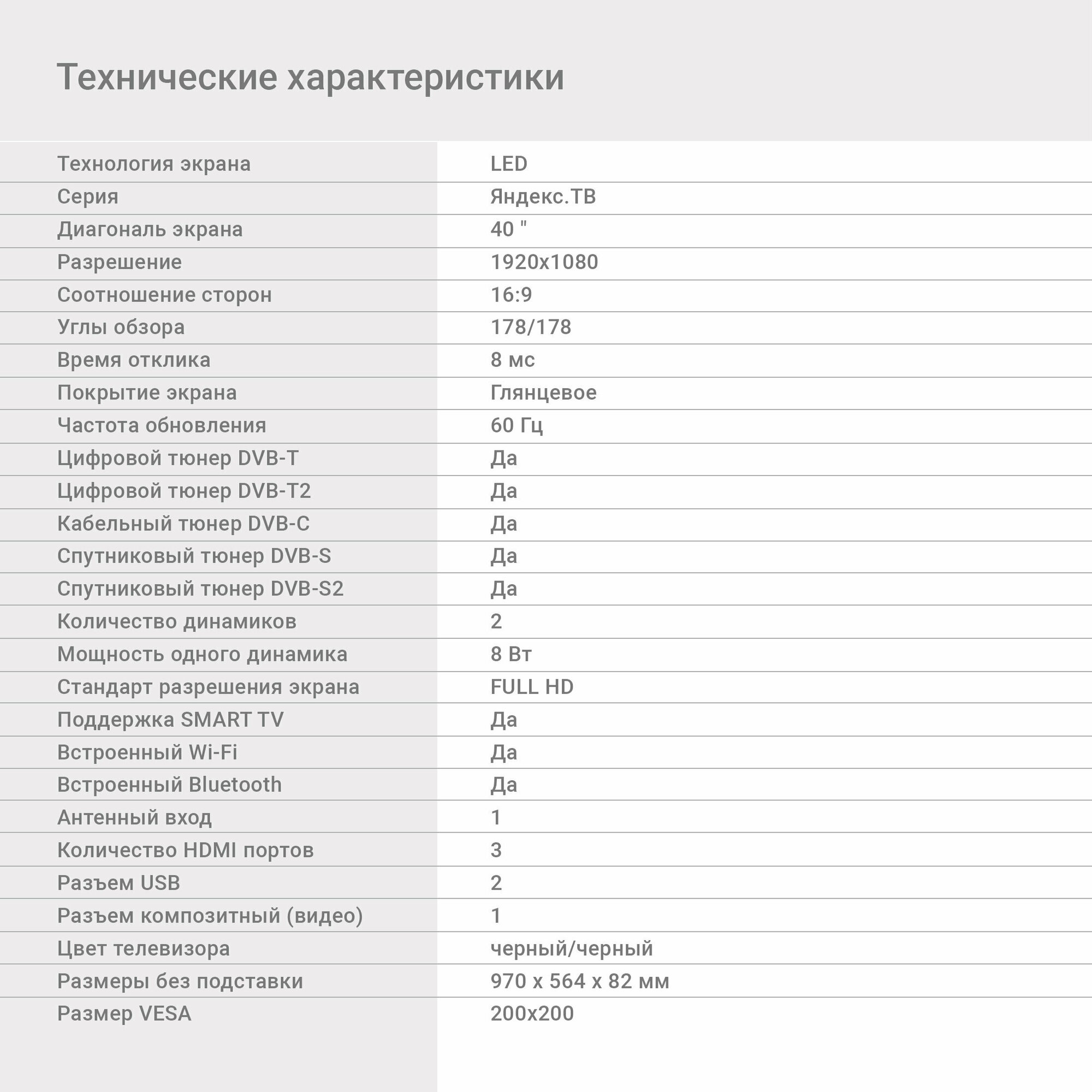 | Особенности | DLNA / EPG / Time Shift / голосовое управление / таймер сна / Телетекст |