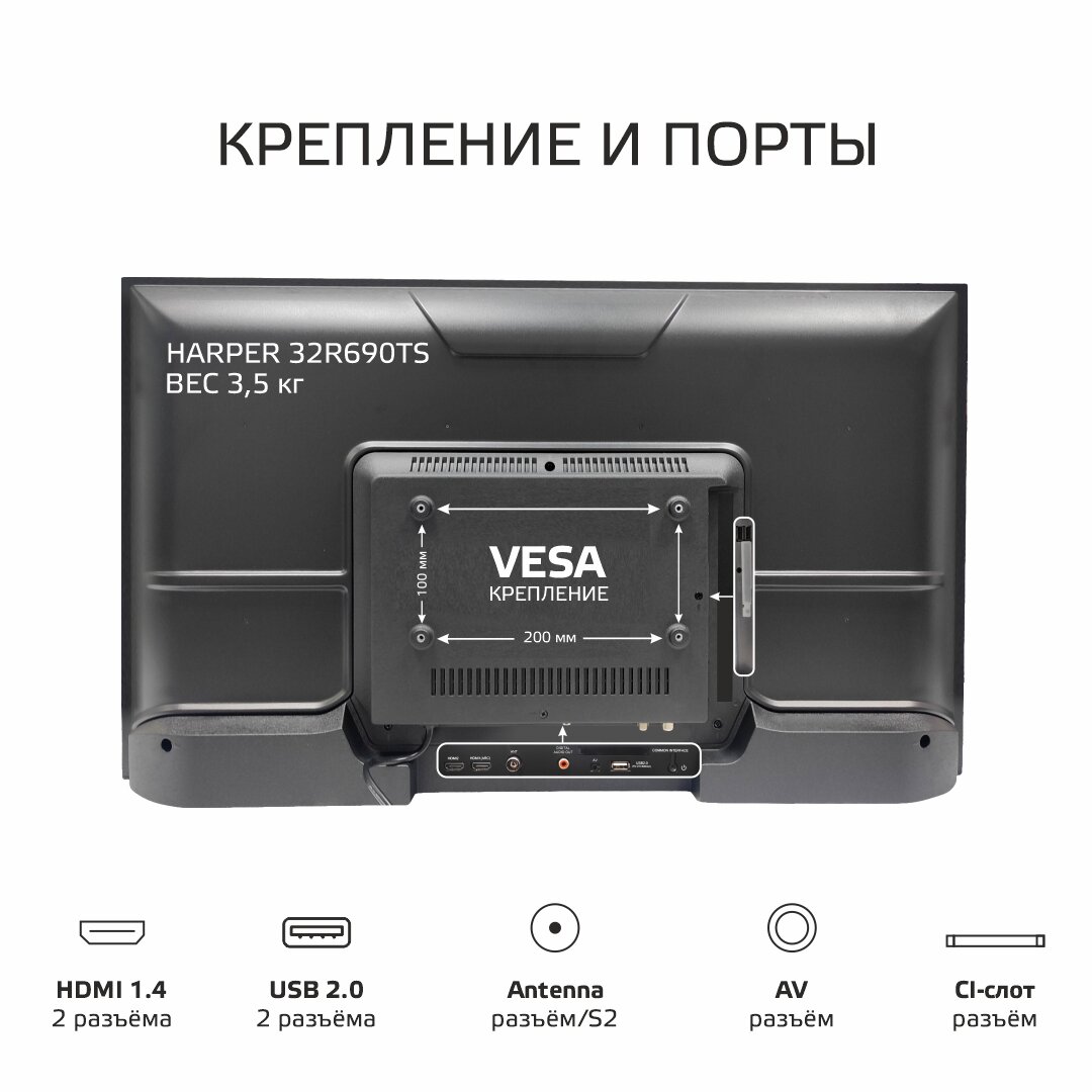 Телевизор Harper 32R690TS, SMART (Android TV), черный интересное: