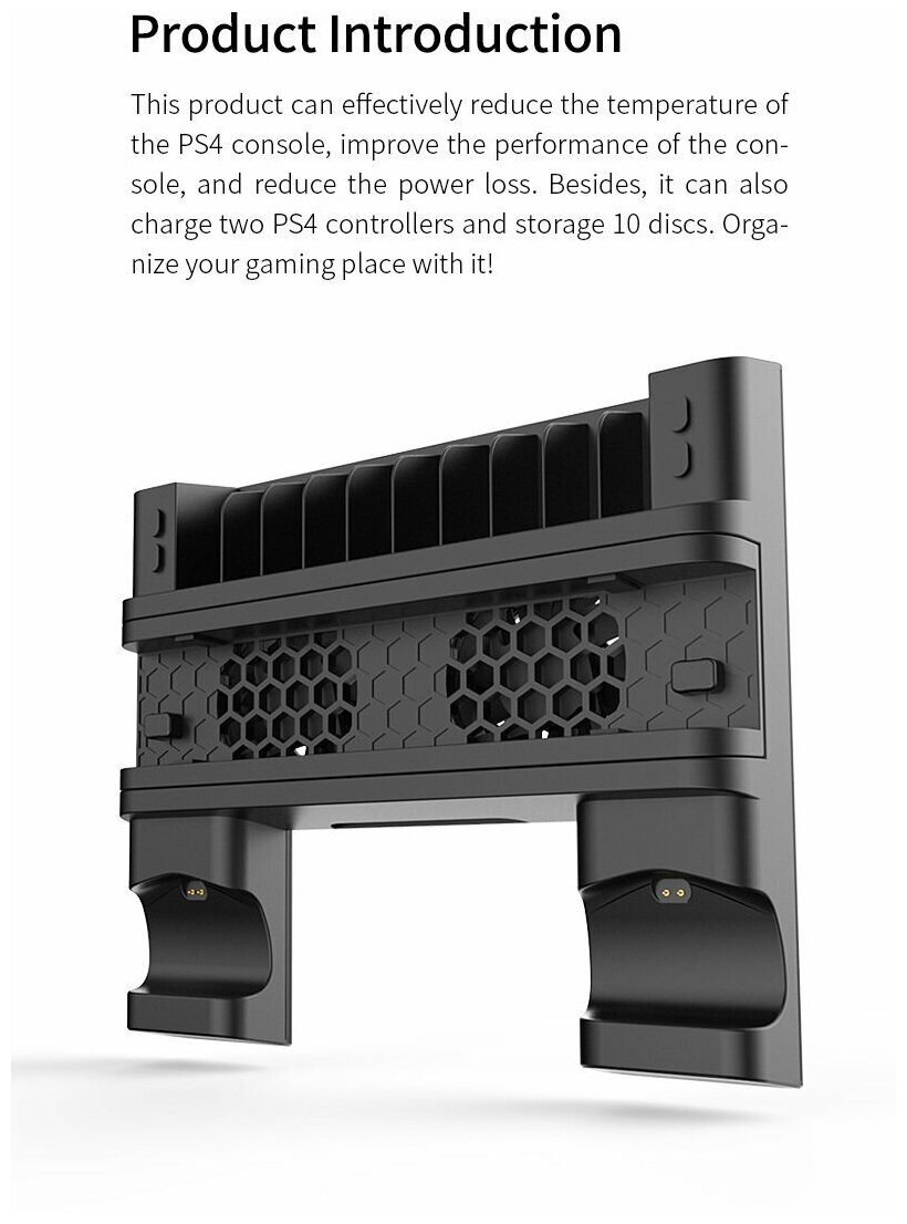Dobe Подставка с системой охлаждения и функцией зарядки геймпадов Multifunctional Cooling Stand для Playstation 4 (TP4-19076) черный
