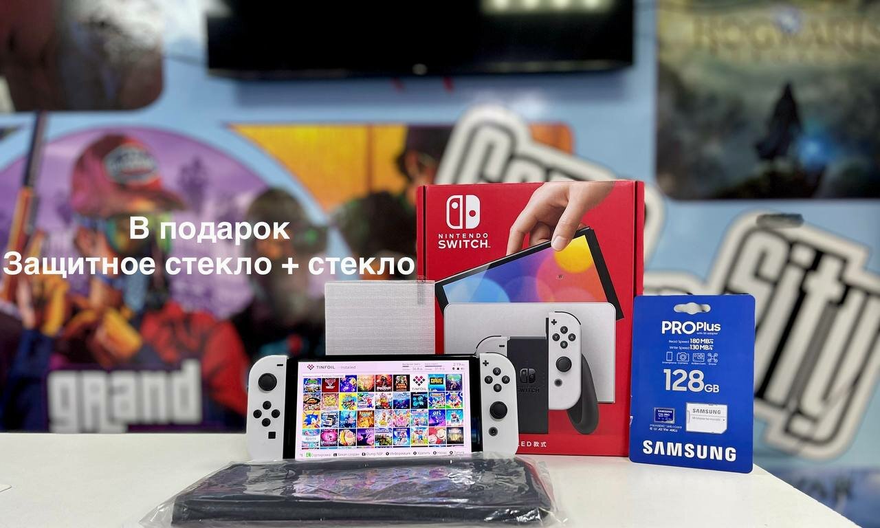 Купить Nintendo Switch Oled Белая + 60 игр + карта памяти + защитное стекло и чехол 128gb