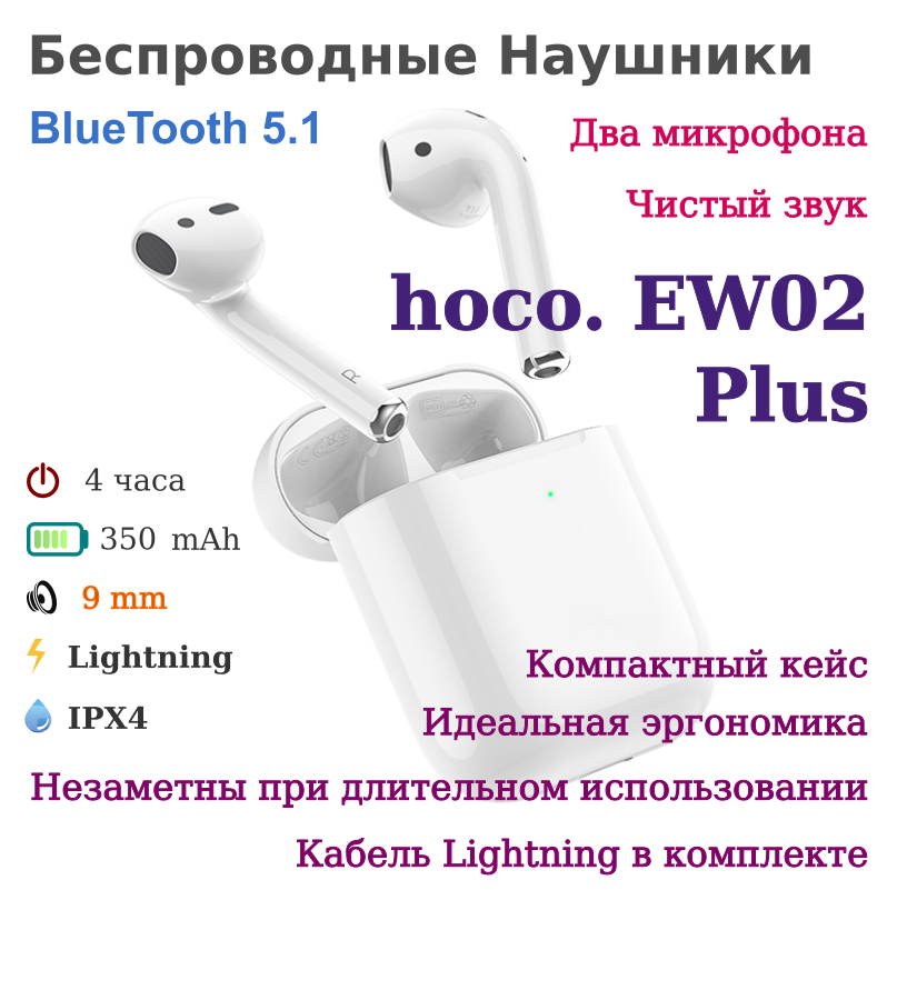Беспроводные наушники hoco EW02 белые интересное: