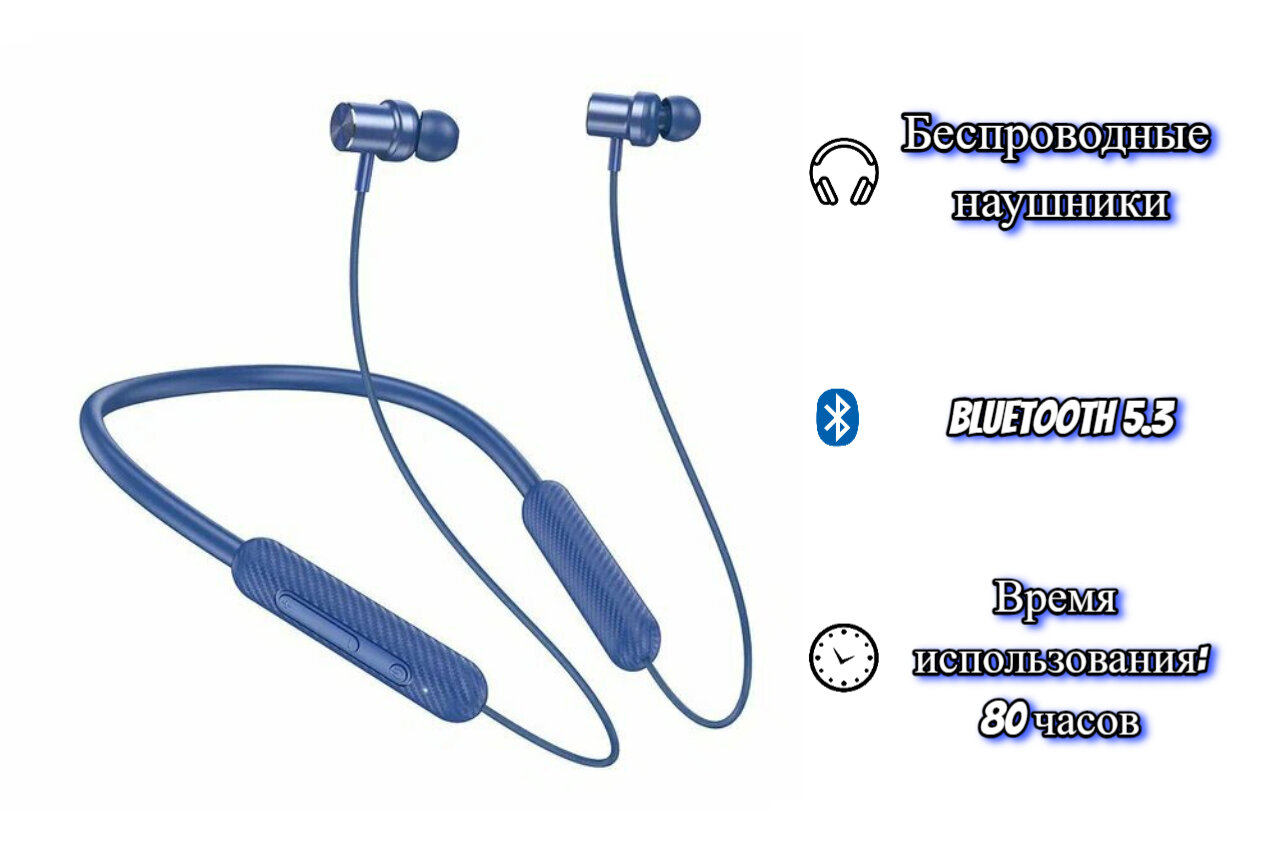 Беспроводные наушники ES70, HOCO, спортивные наушники с шейным ободком, синий