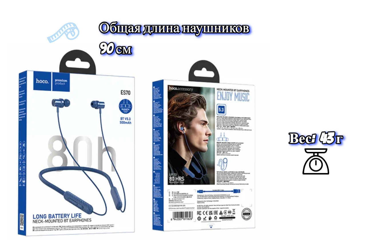 СохранитьНаушники ES70, HOCO, беспроводные спортивные наушники с обручем, синий интересное: