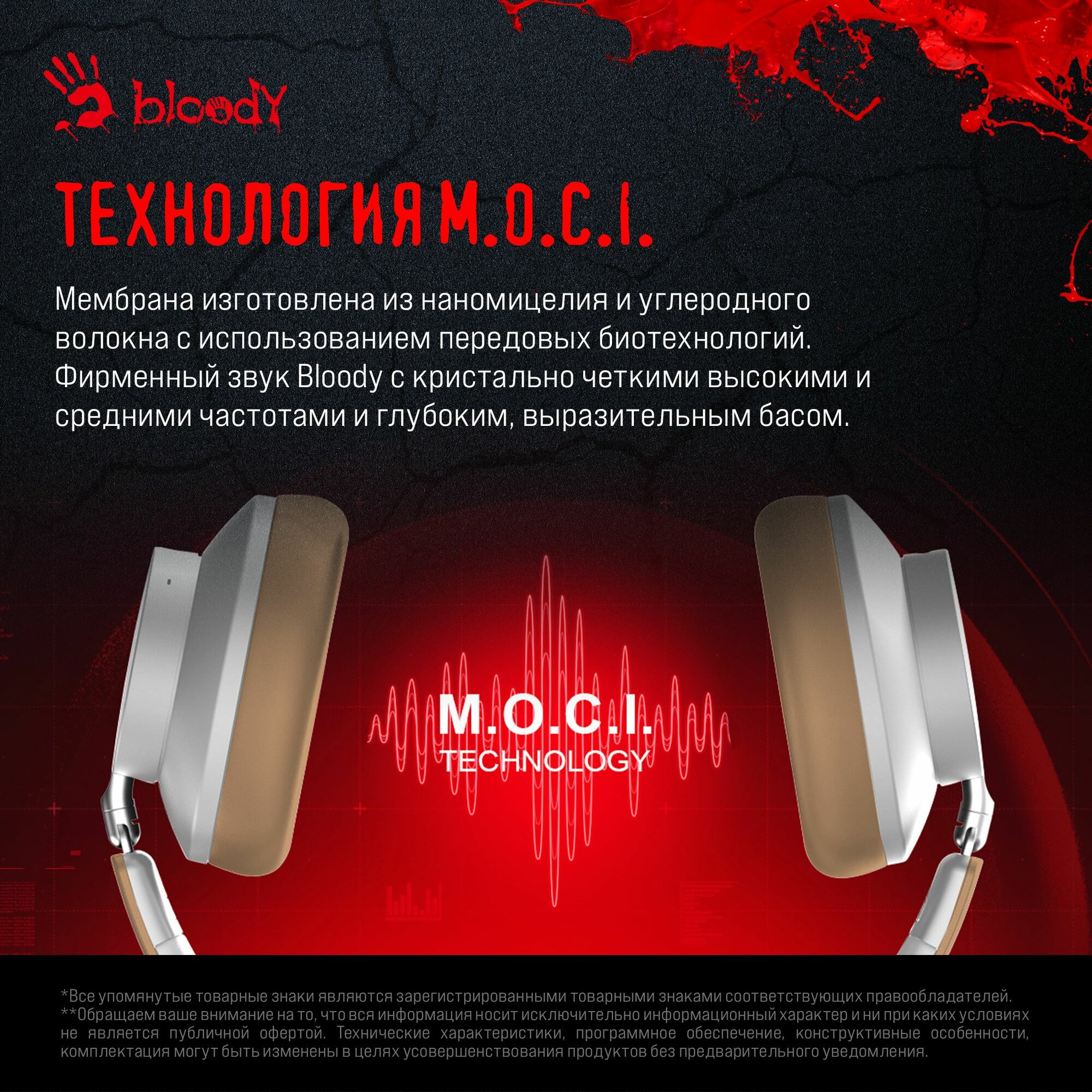 Наушники с микрофоном A4Tech Bloody MR720 белый/красный мониторные BT/Radio оголовье (MR720 Naraka) .