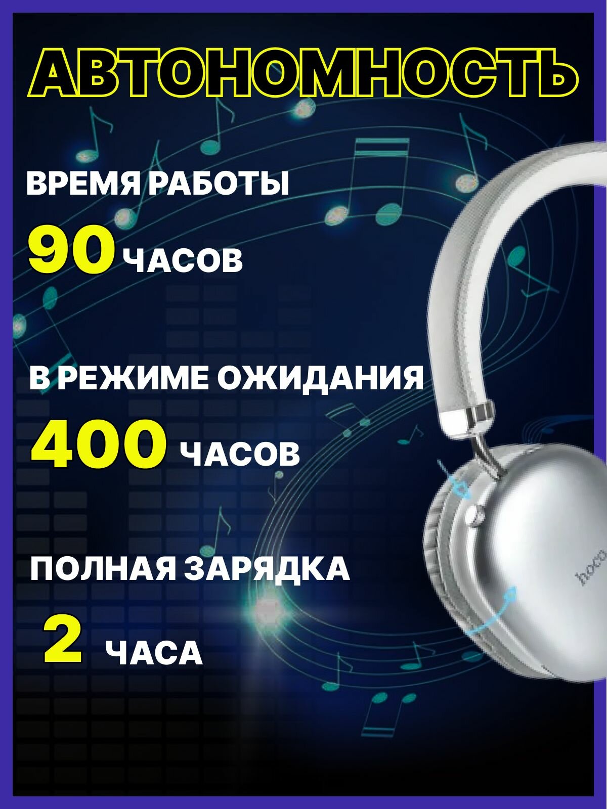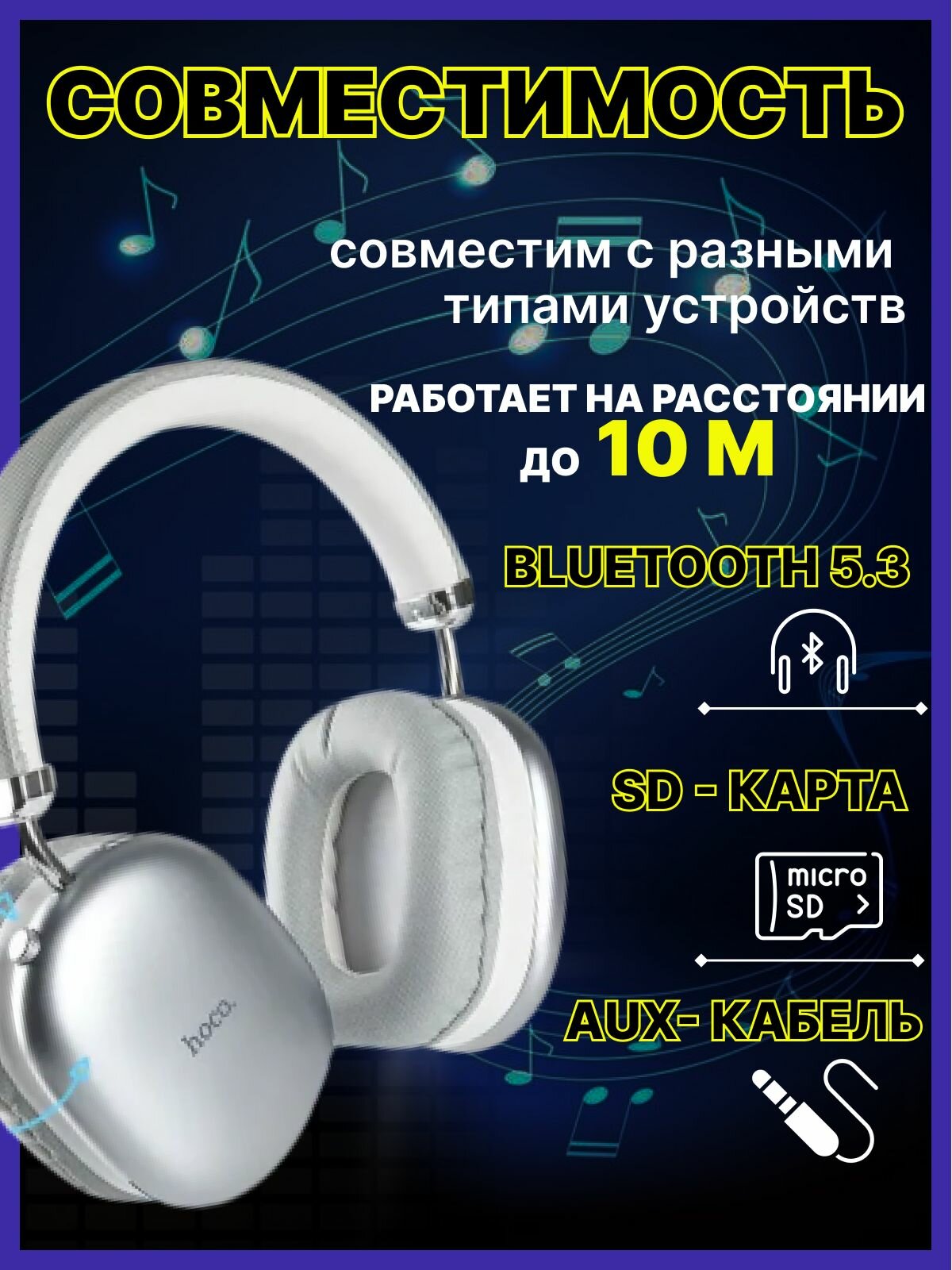Наушники Hoco с Bluetooth 5,3 и временем работы до 90 ч