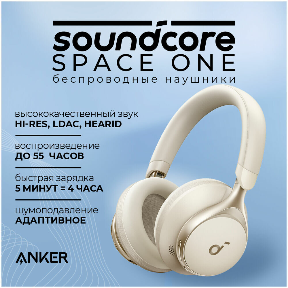 Беспроводные наушники Anker Soundcore Space One, бежевый/белый