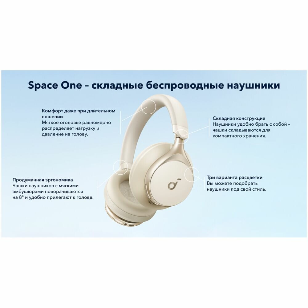 Наушники беспроводные полноразмерные Soundcore Space One (Q40) / Наушники беспроводные с шумоподавлением, небесный - Global