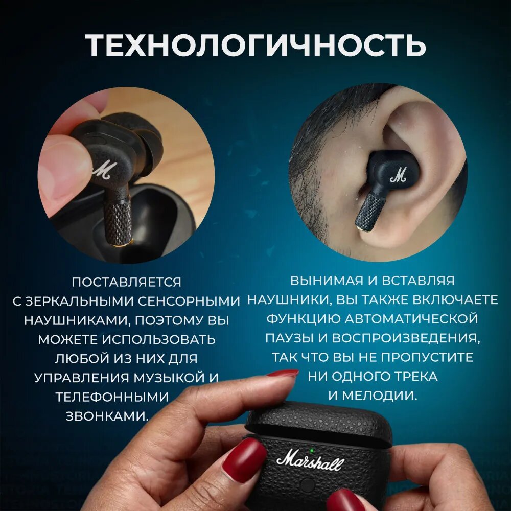 | Плюсы: | Очень лёгкие, в сравнении с самыми дорогими беспроводными наушниками бренда Marshall - охватывающими (over-ear), почти полноразмерными MONITOR II A.N.C., которые существенно массивнее и крупнее по чашам.