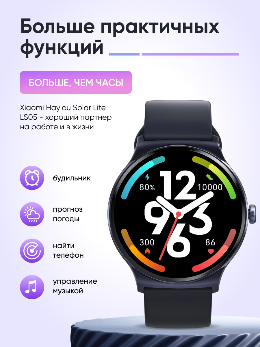 Умные часы Xiaomi Haylou LS05 Solar Lite, Bluetooth 5.3, экран 1.38", 240 мАч