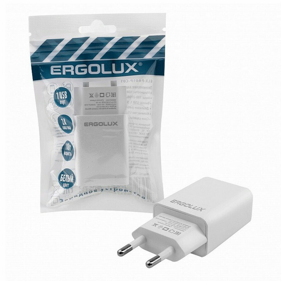 Сет.адаптер/зарядник/блок пит. 1xUSB 110-220V, 5V/2A ERGOLUX ELX-РA01P-C01 промо белый, пакет