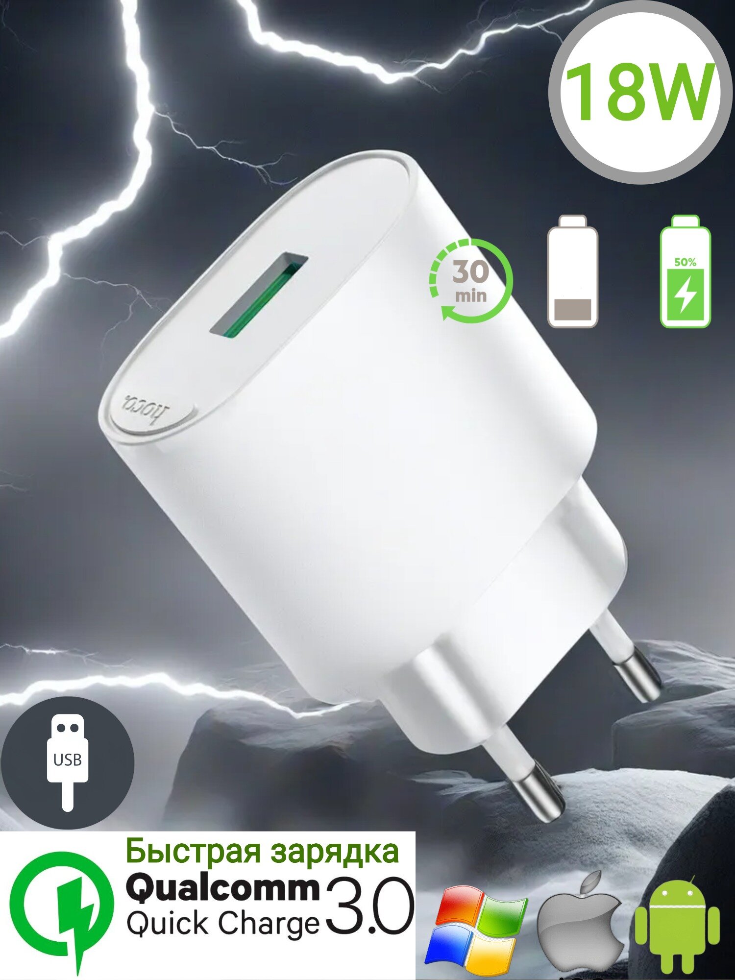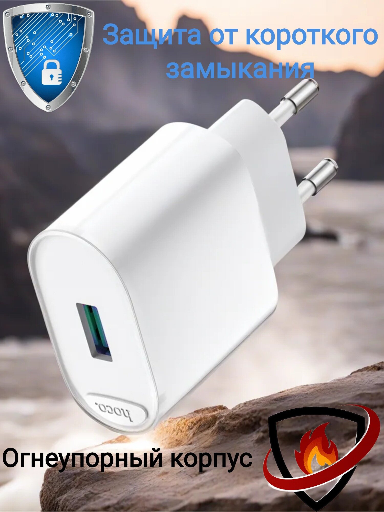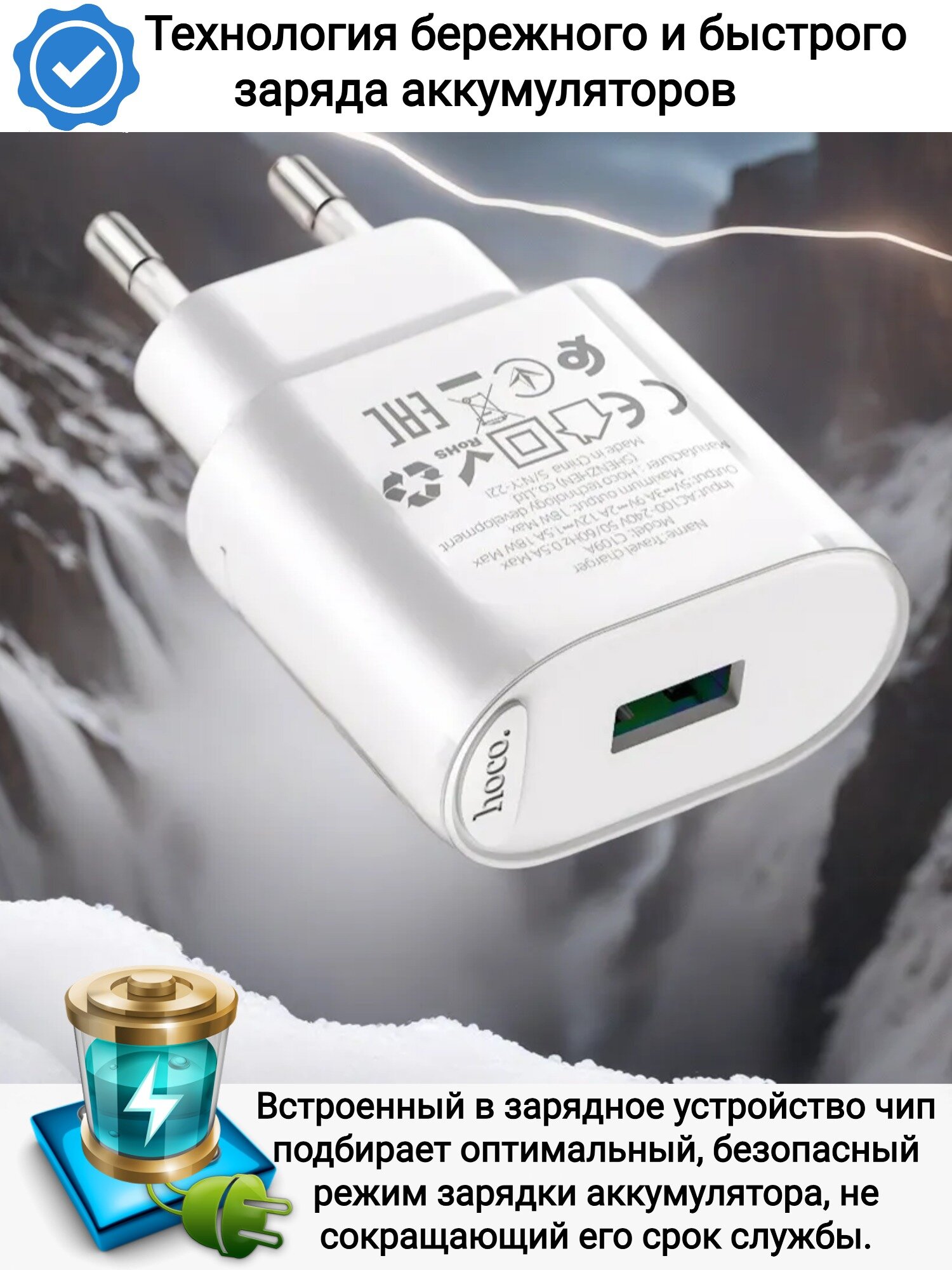 Сетевое зарядное устройство Hoco C109A, 1 USB, 18 Вт, QC, кабель micro USB - USB, 1 м, белое интересное: