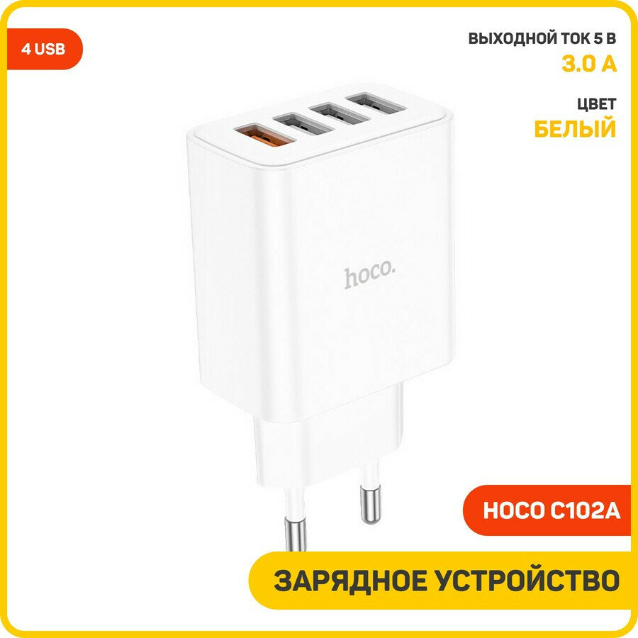 Сетевое зарядное устройство Hoco C102A, 1 USB, 18 Вт, 3 USB, 2.1 А, QC, белое