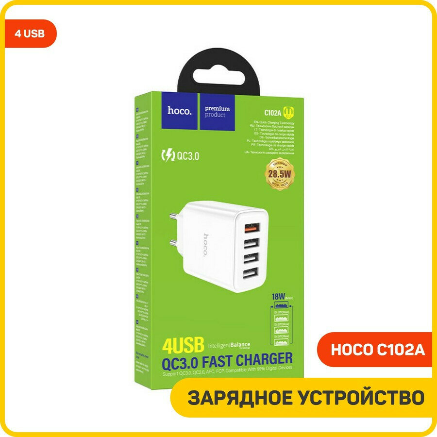 Сетевое зар. устр. Hoco C102A 4USB 18W QC3.0 белое
