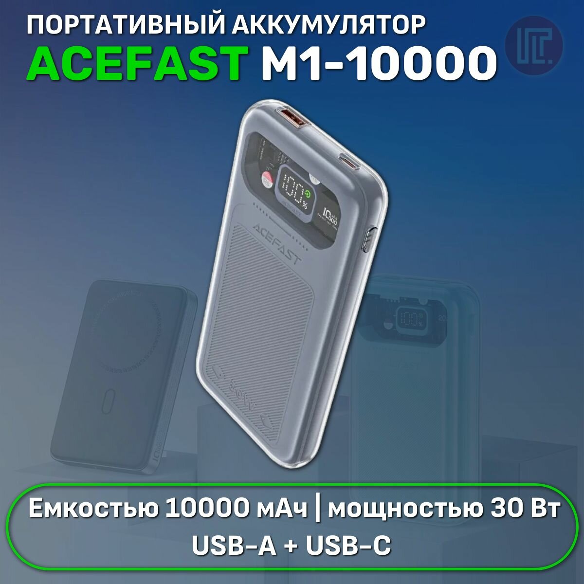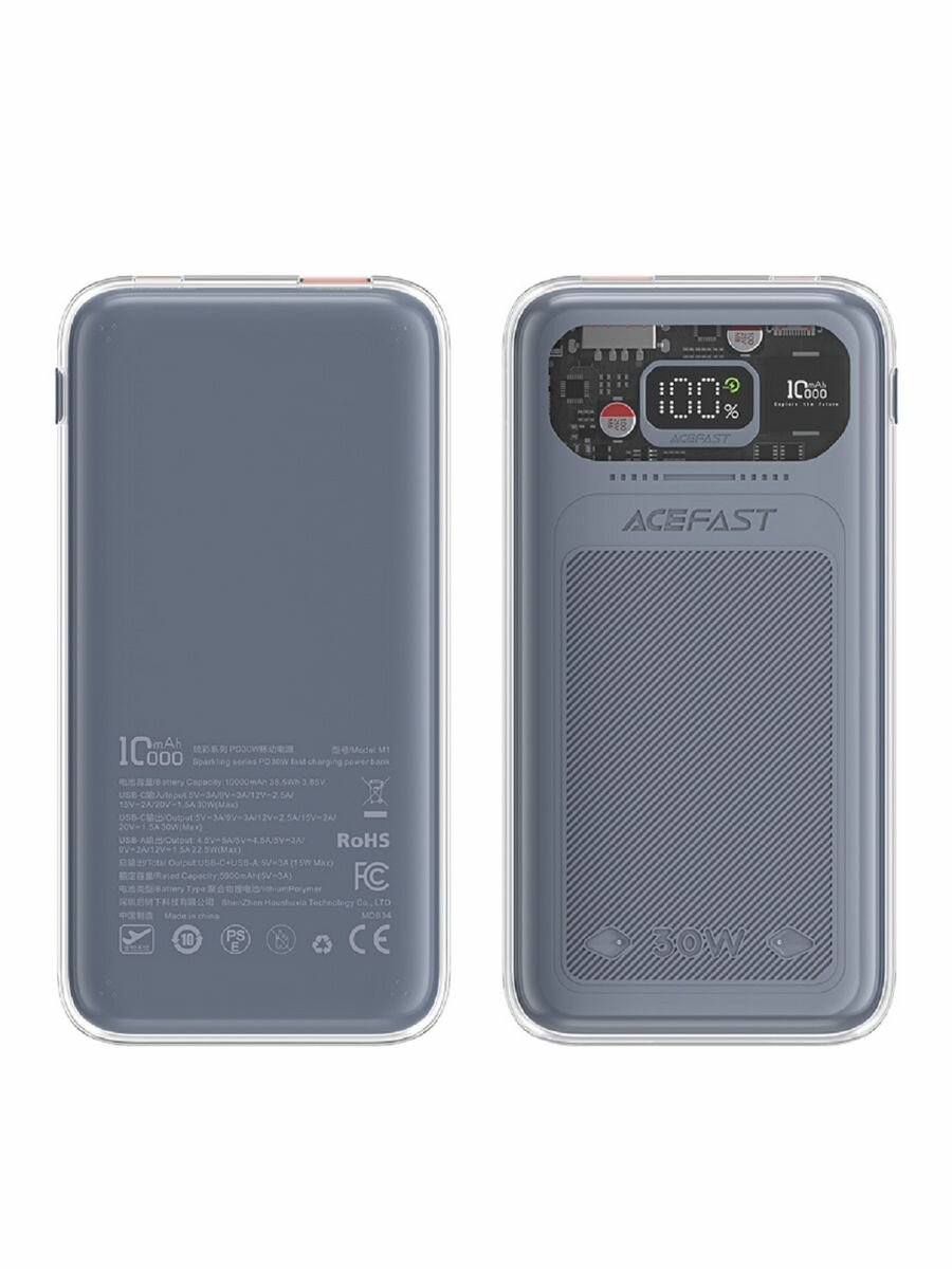 Универсальный Доп. Аккумулятор 10000mAh, M1, ACEFAST, выход: 1 PD (30W) 1 USB (22.5W), серый
