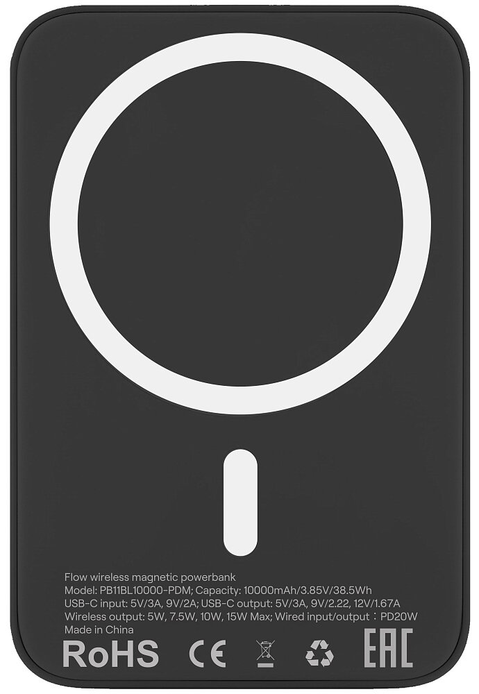 Внешний аккумулятор с беспроводной зарядкой uBear Flow Magnetic Power bank 10000mAh, PD20W (PB11BL10000-PDM, черный)