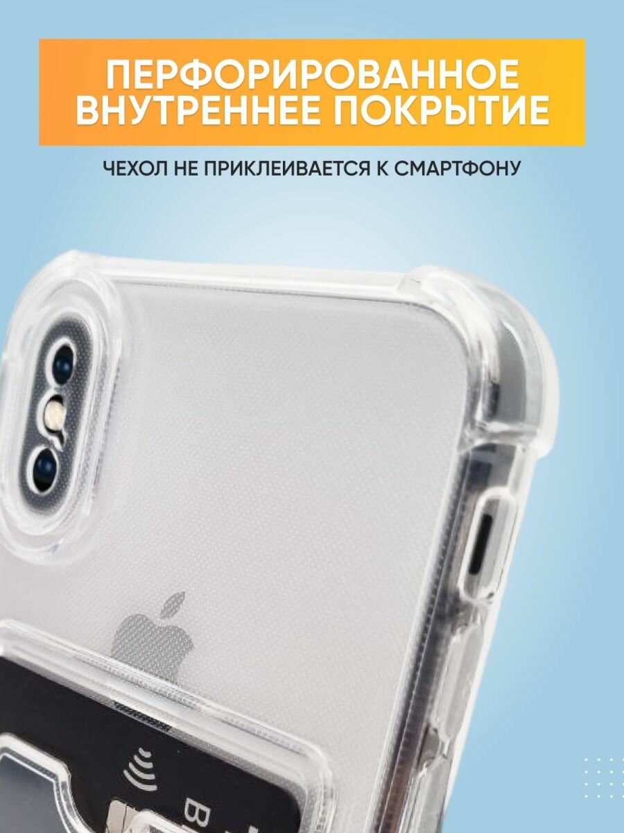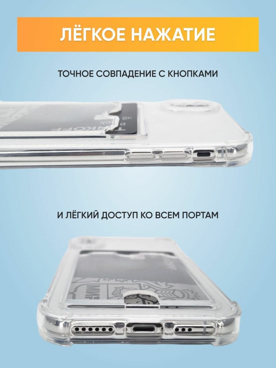 Купить Чехол на Айфон XS X ( iPhone Х ХС ) прозрачный силиконовый с карманом картохдером для карт