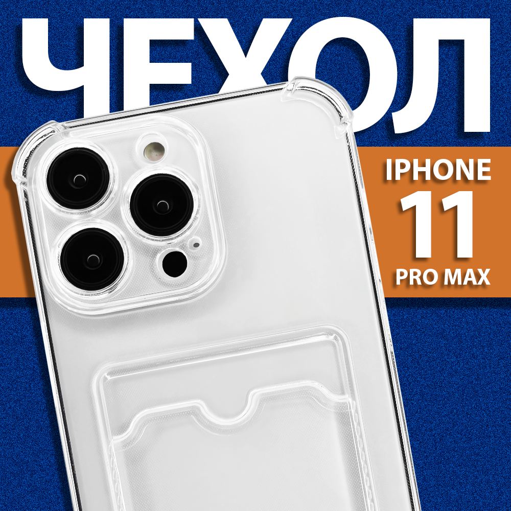 Купить Чехол на Айфон 11 Про Макс ( iPhone 11 Pro Max чехол ) прозрачный силиконовый с карманом картохдером для карт