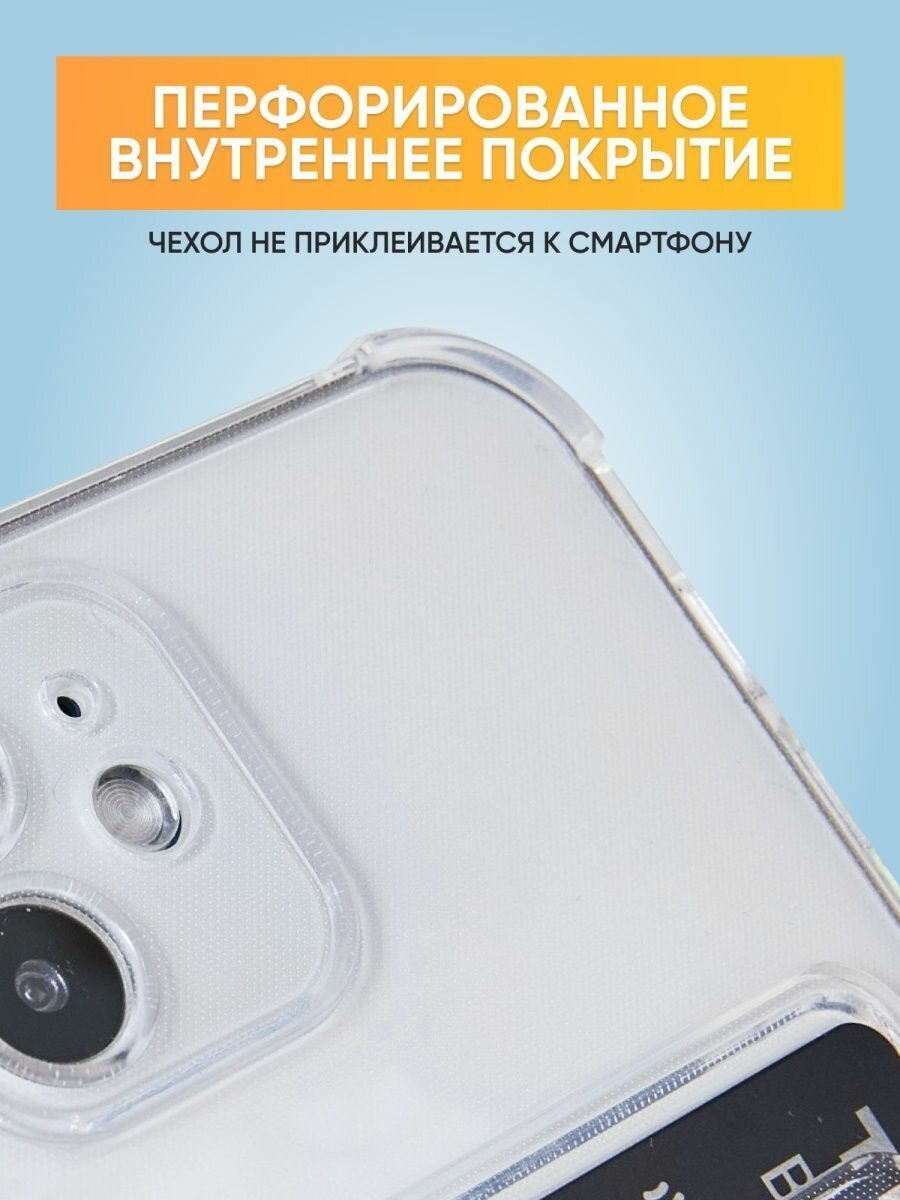 Чехол на Реалми ноте 50 с51 с53 ( Realme note 50 c51 c53 ) прозрачный силиконовый с карманом для карт противоударный