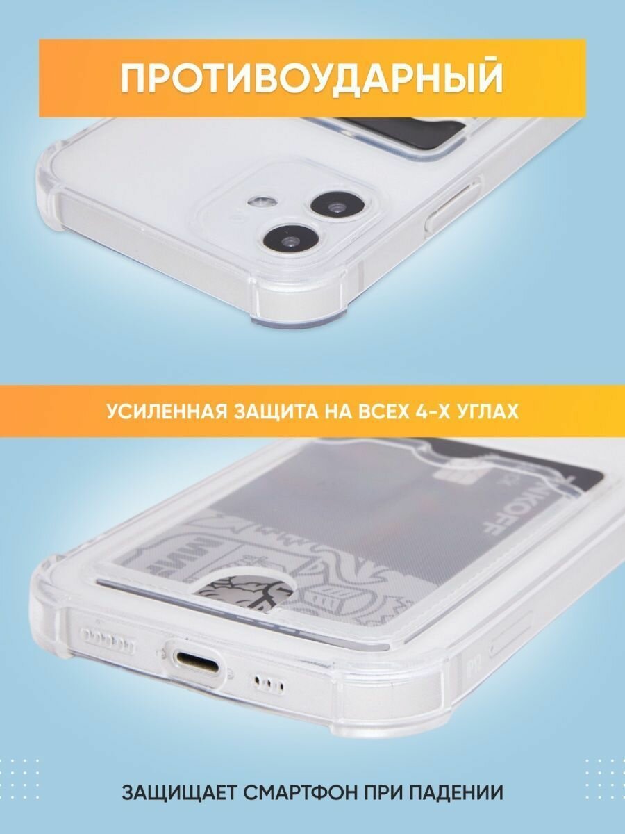 Чехол на Айфон 15 ( iPhone 15 чехол ) прозрачный силиконовый с карманом картохдером для карт
