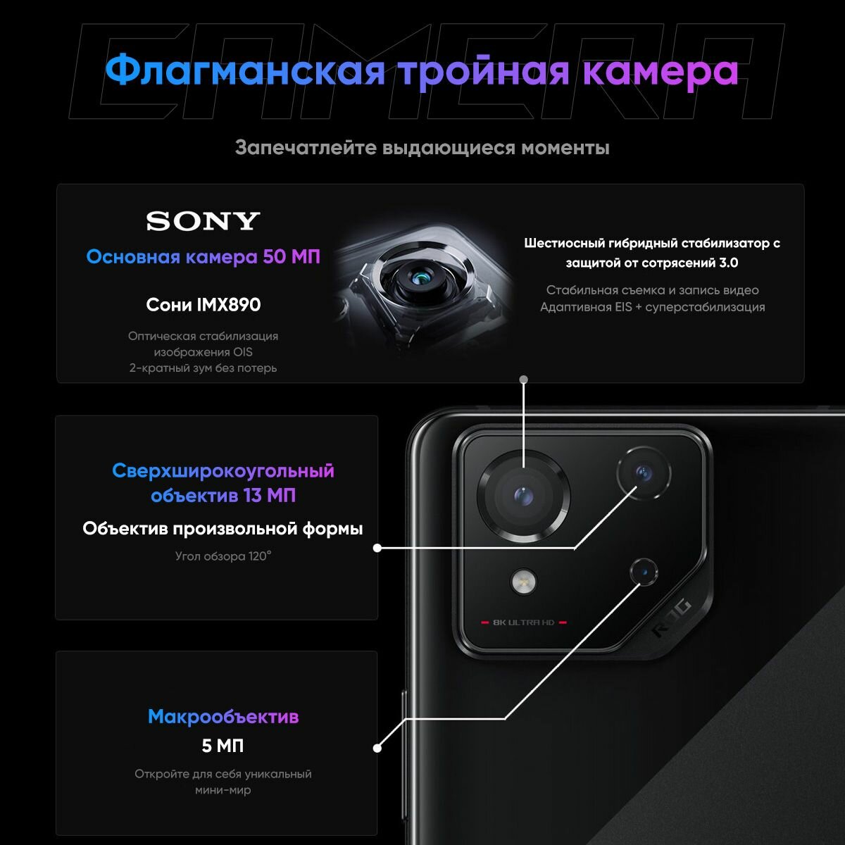 Смартфон ASUS ROG Phone 8 16/256 ГБ CN (Китай), Dual nano SIM, Phantom Black