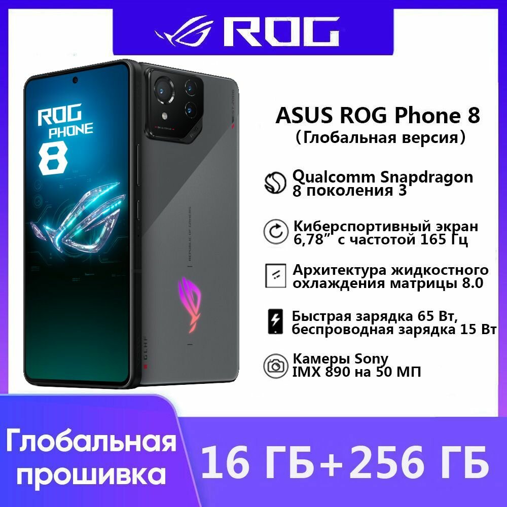 Купить Смартфон ASUS ROG Phone 8 16/256 Гб серый ,Global Глобальная версия,Dual nano SIM ,Поддержка русского языка и сервисов Google +Кулер для телефона ROG X
