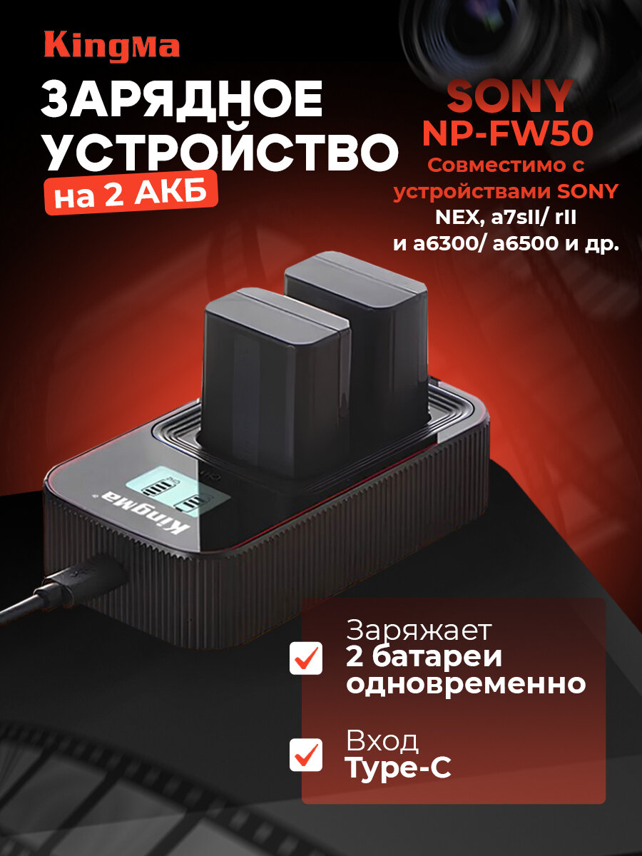 Купить Зарядное устройство KingMa BM058-FW50 с дисплеем на 2 акб для Sony