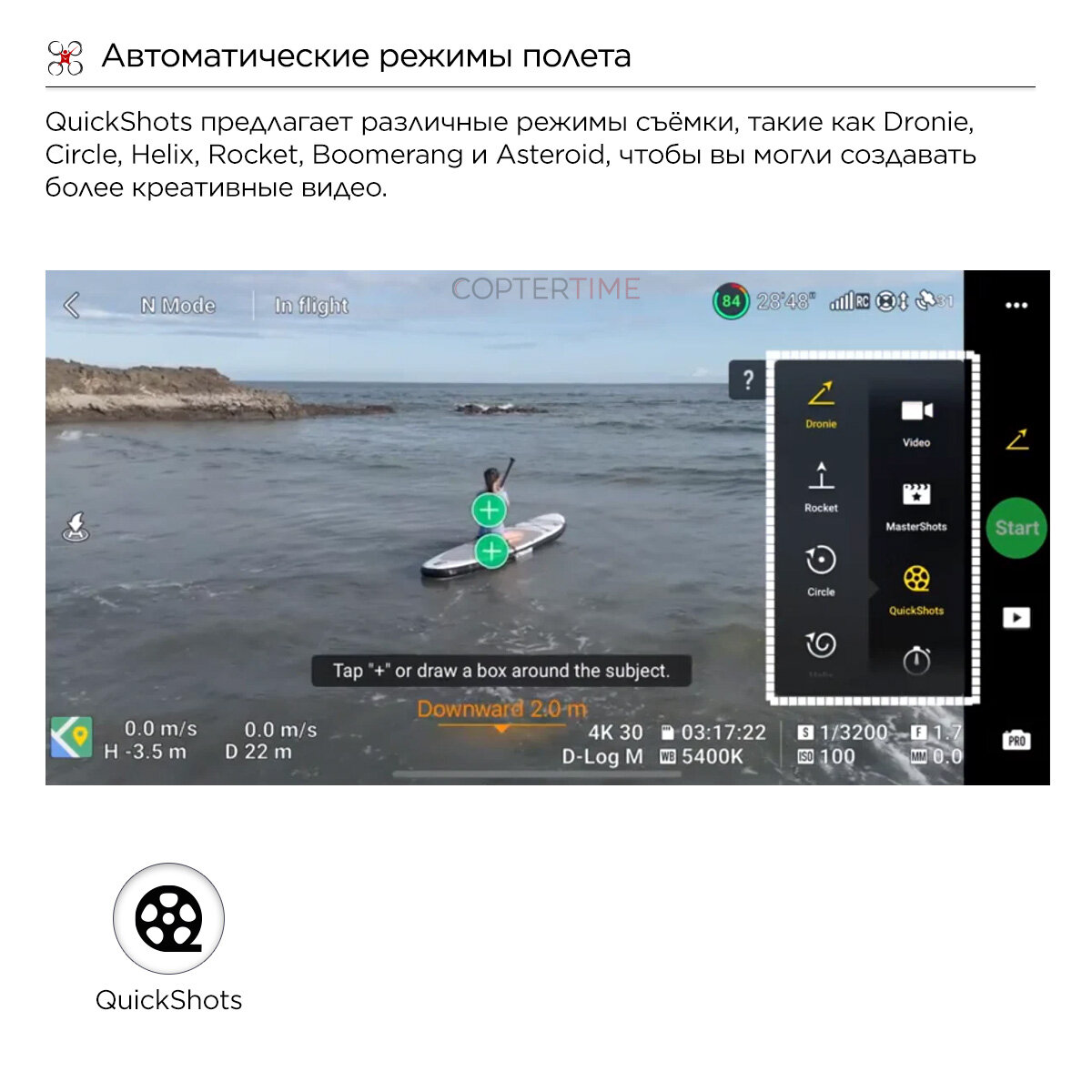 | Функции | Active Track / Point of Interest / возврат одним нажатием / возвращение в точку взлета / следование за оператором |