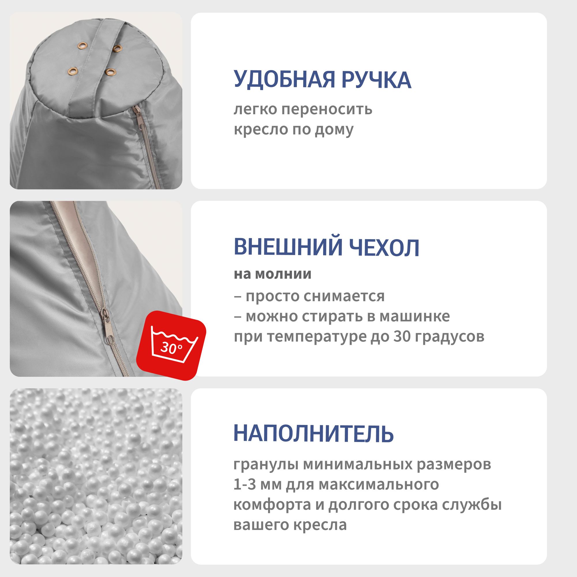 Кресло мешок Bean Joy кресло груша, размер ХL, оксфорд, серебристо-серый