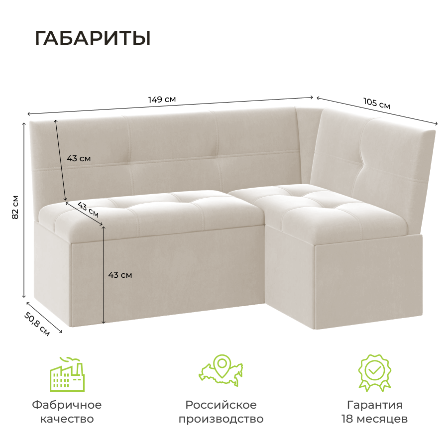 СохранитьКухонный уголок BONMEBEL Квадро тип3, ТК Бежевый, 149х105х82 см интересное: