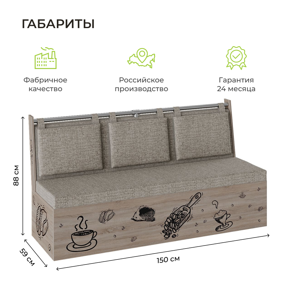 СохранитьСкамья прямая Роденго BONMEBEL, Дуб сонома трюфель/Рогожка бежевый, механизм не раскладной. интересное: