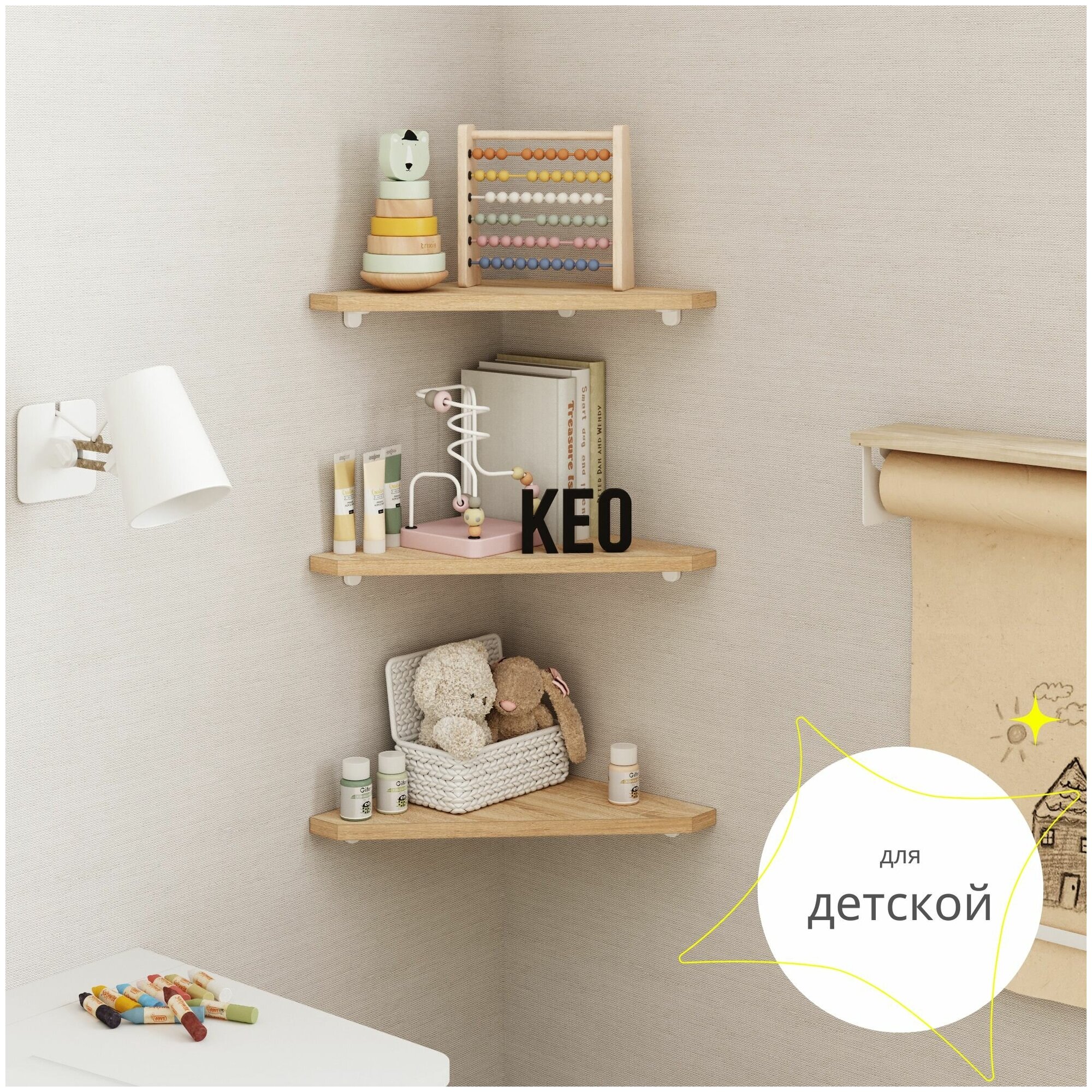 СохранитьУгловая полка настенная комплект из 3 шт для книг и цветов в спальню кухню детскую туалет Кео СТМ-608 дуб сонома интересное: