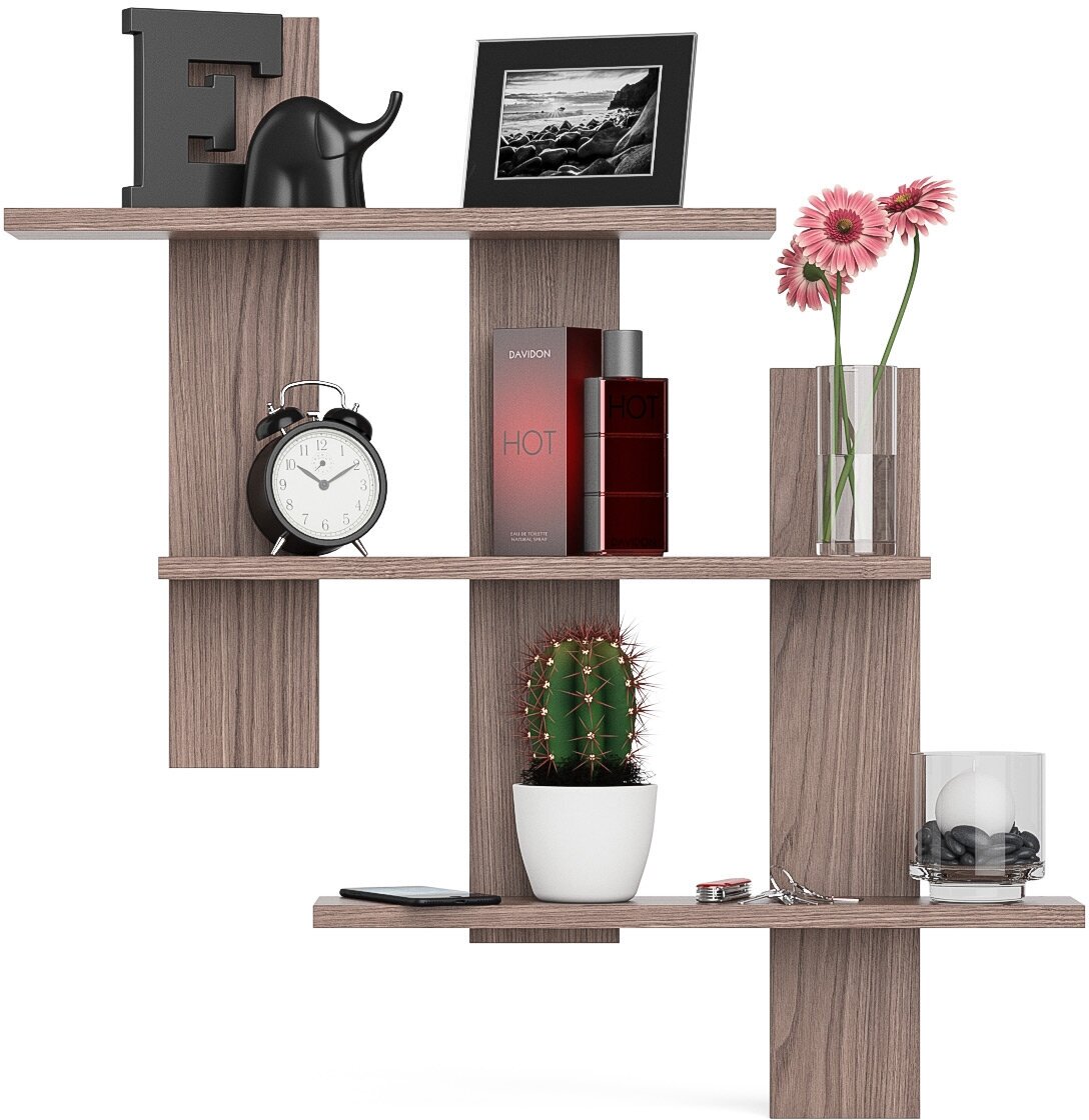 | Дополнительная информация | представляет из себя 6 планок соединеных по диагонали - 3 вертикальных и 3 полочки, на крайних вертикальных планках с обратной стороны есть углубления, впритык к которым крепятся навесы с помощию шурупов 4х16, навесы и шурупы входят в комплект поставки, фурнитура (саморез, дюпель) непосредственно для крепления полки к стене НЕТ, выполнена мебель из качественной, экологически чистой ламинированной ДСП 16 мм, поставляется в разобранном виде в надёжной упаковке, с комплектом сборочной фурнитуры и инструкцией по сборке |