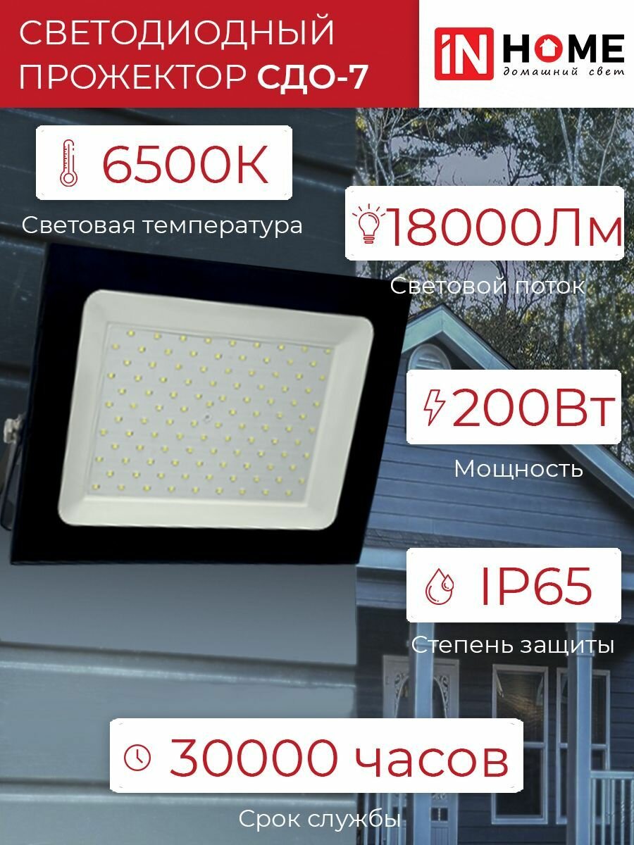 4690612034676, Прожектор светодиодный СДО-7 200Вт 230В 6500К IP65 черный IN HOME интересное: