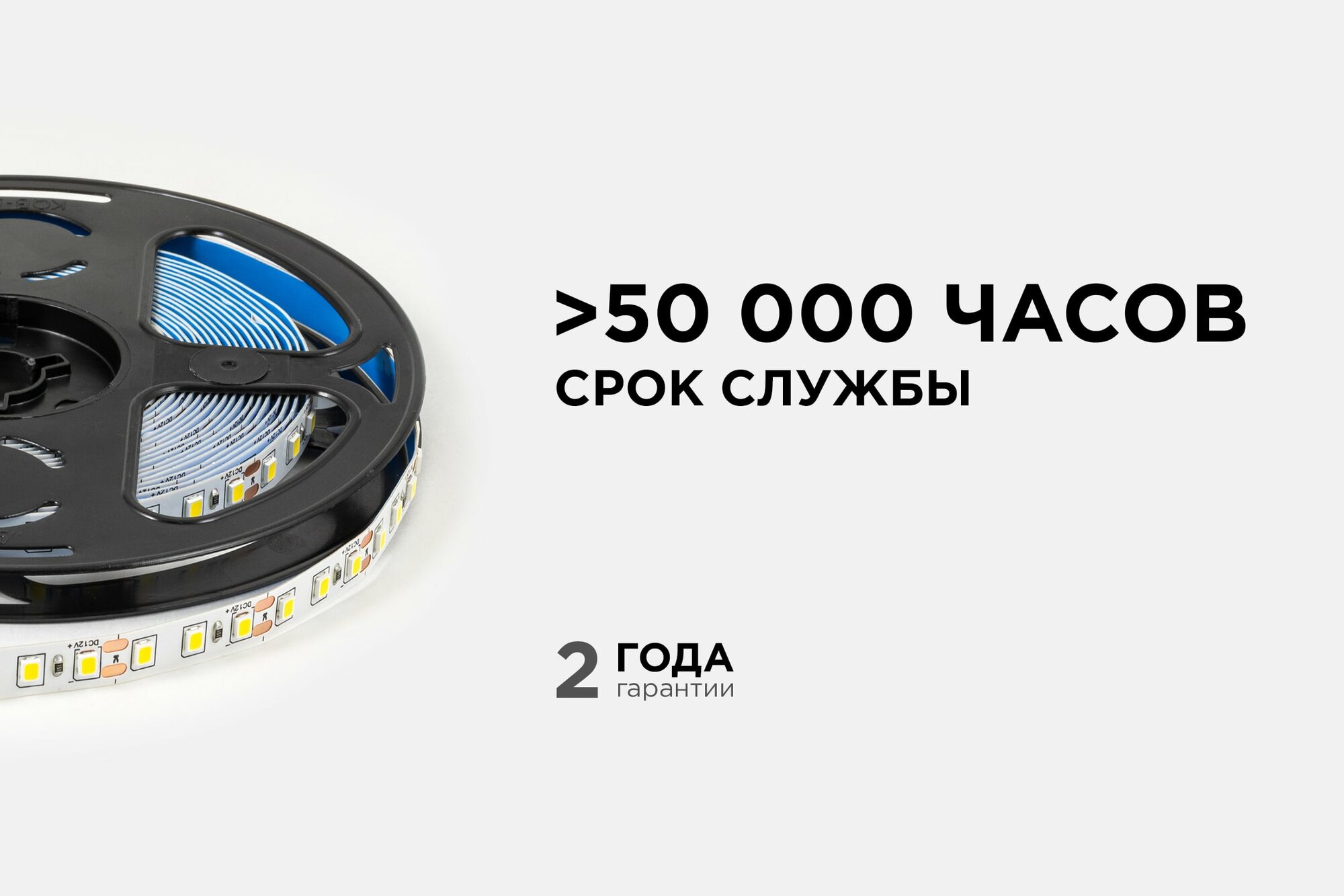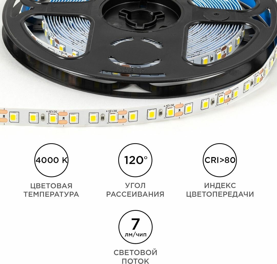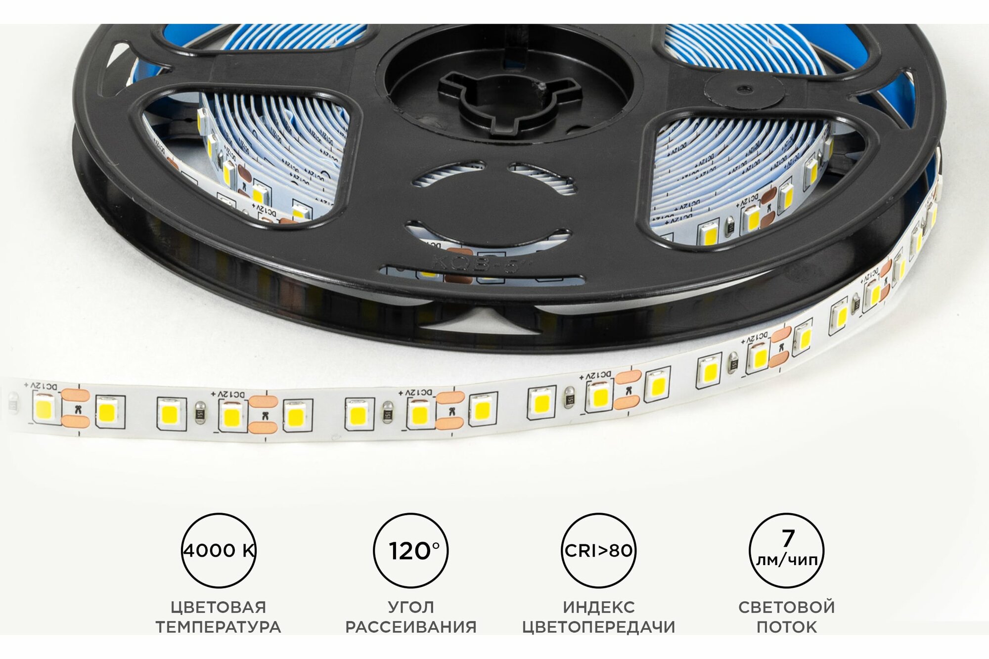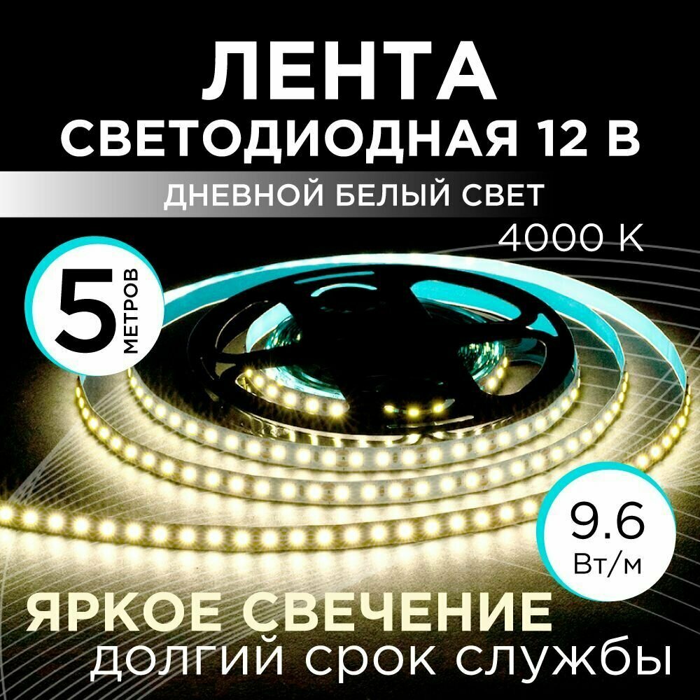 Светодиодная лента белая 5 метров 12В, 9,6Вт/м, smd2835, 120д/м, IP20, 7Лм/чип, ширина подложки 8мм, 5м, д/б, 4000К интересное: