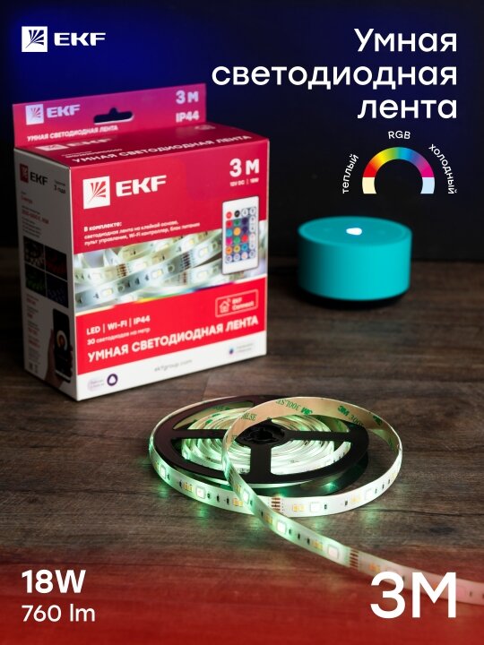 | Дополнительная информация | Умными светодиодными лентами можно дистанционно управлять по Wi-Fi с помощью мобильного приложения EKF Connect для iOS и Android |
