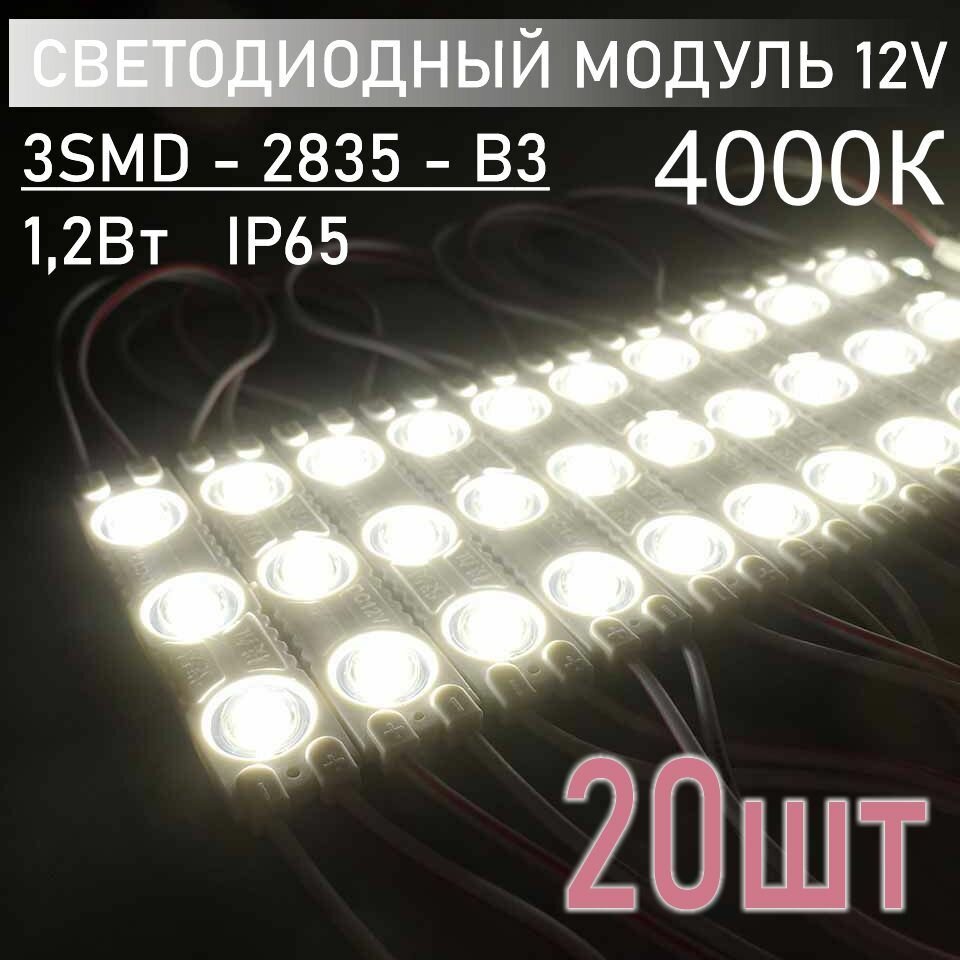 Светодиодный модуль 12В, белый нейтральный IP65, В3, 2835, набор 20 шт. интересное: