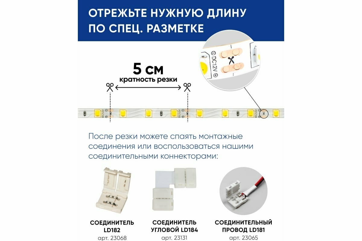 Светодиодная лента для контурной подсветки SMD 3528 60 диод/5 Вт/м 24 В 8 мм IP20 3 м холодный белый свет