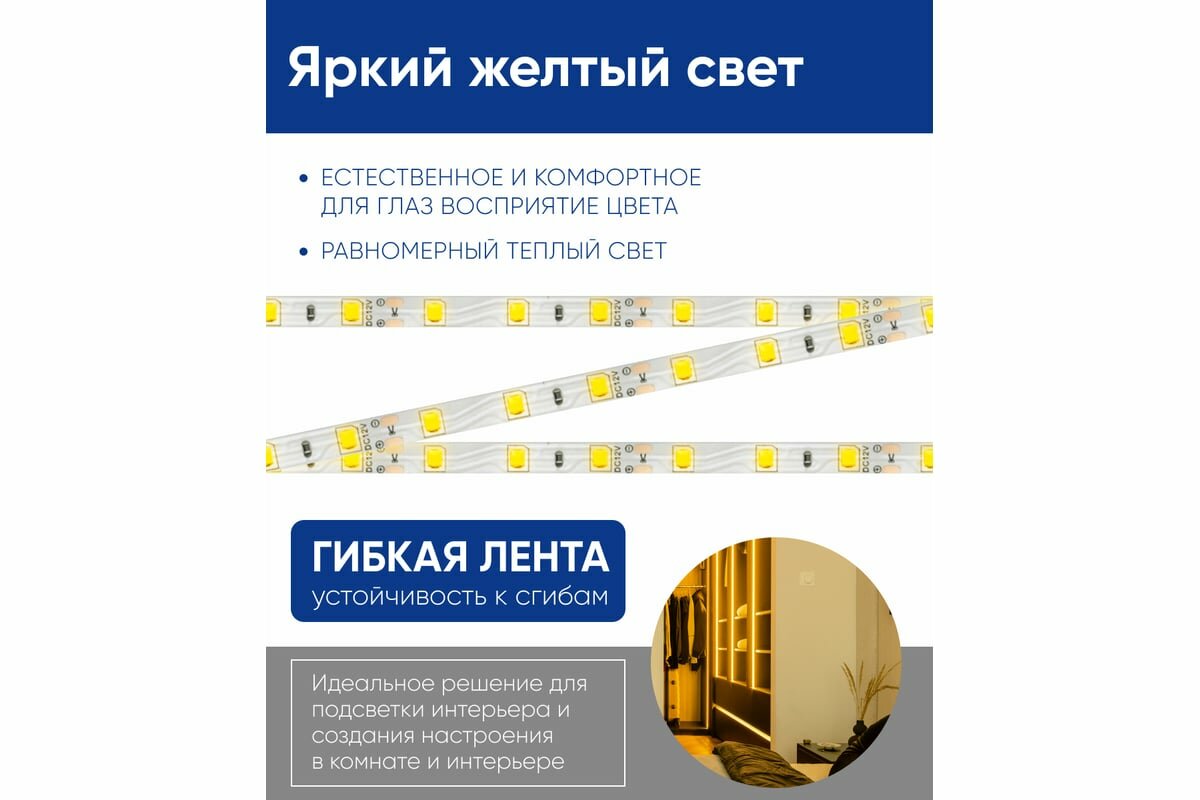 СохранитьCветодиодная LED лента Feron LS603, 60SMD(2835)/м 4.8Вт/м 5м IP20 12V желтый, 27670 интересное:
