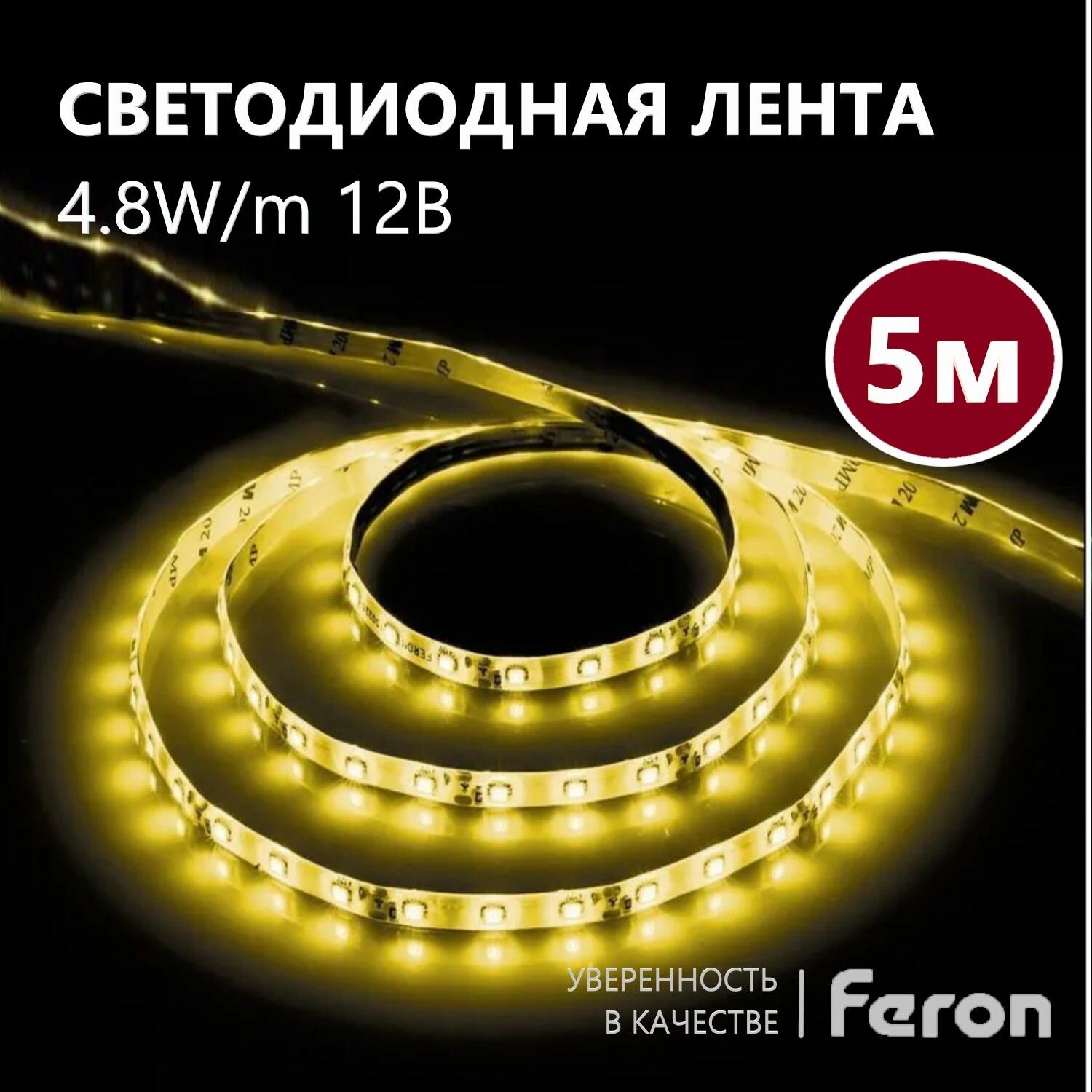 Cветодиодная LED лента LS603, 60SMD(2835)/м 4.8Вт/м 5м IP20 12V 4000К, FERON 41446 (1 шт.)
