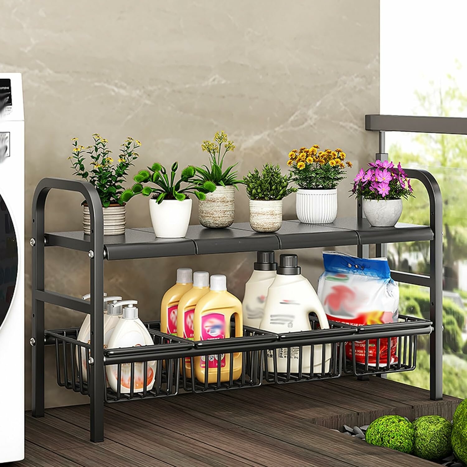 Органайзер под раковиной — выдвижная кухонная полка для хранения под раковиной одноярусная 2 полки 2 корзины, черная