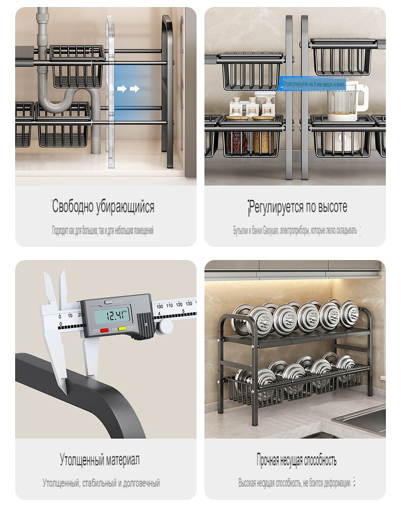 СохранитьОрганайзер под раковиной — выдвижная кухонная полка для хранения под раковиной двухъярусная 4 полки 4 корзины, черная интересное: