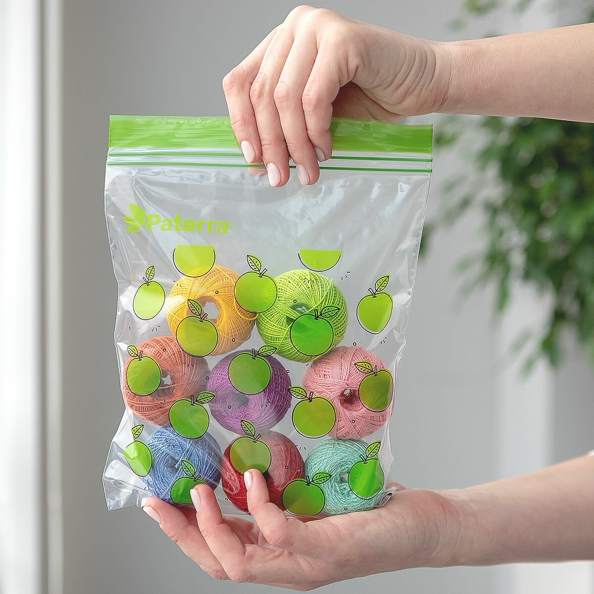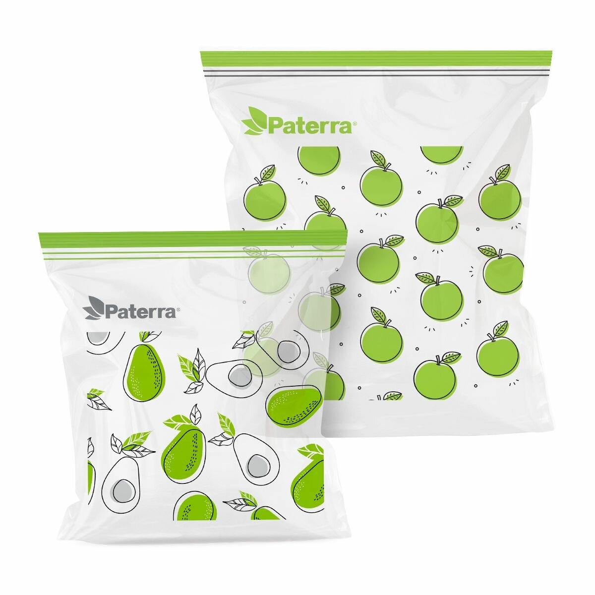 Купить Фасовочные пакеты для хранения и замораживания продуктов c двойным ZIP-Lock PATERRA "Авокадо, Яблоко", 15,5х15см-30 штук,18,5х21см-30штук, всего-60шт.