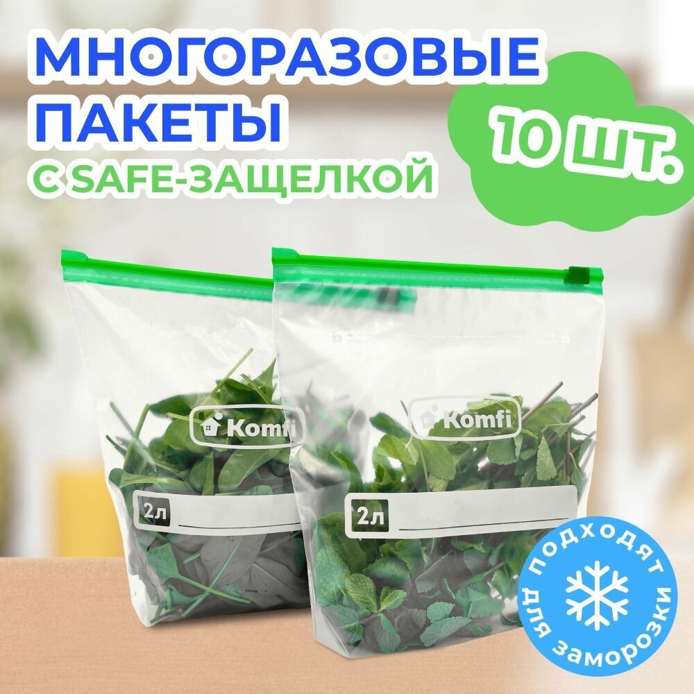 Пакеты для заморозки продуктов с safe-защелкой Komfi (20.5СМ*24,5, 2 л, 10 шт.), фасовочные пакеты, герметичный пакет для хранения продуктов интересное:
