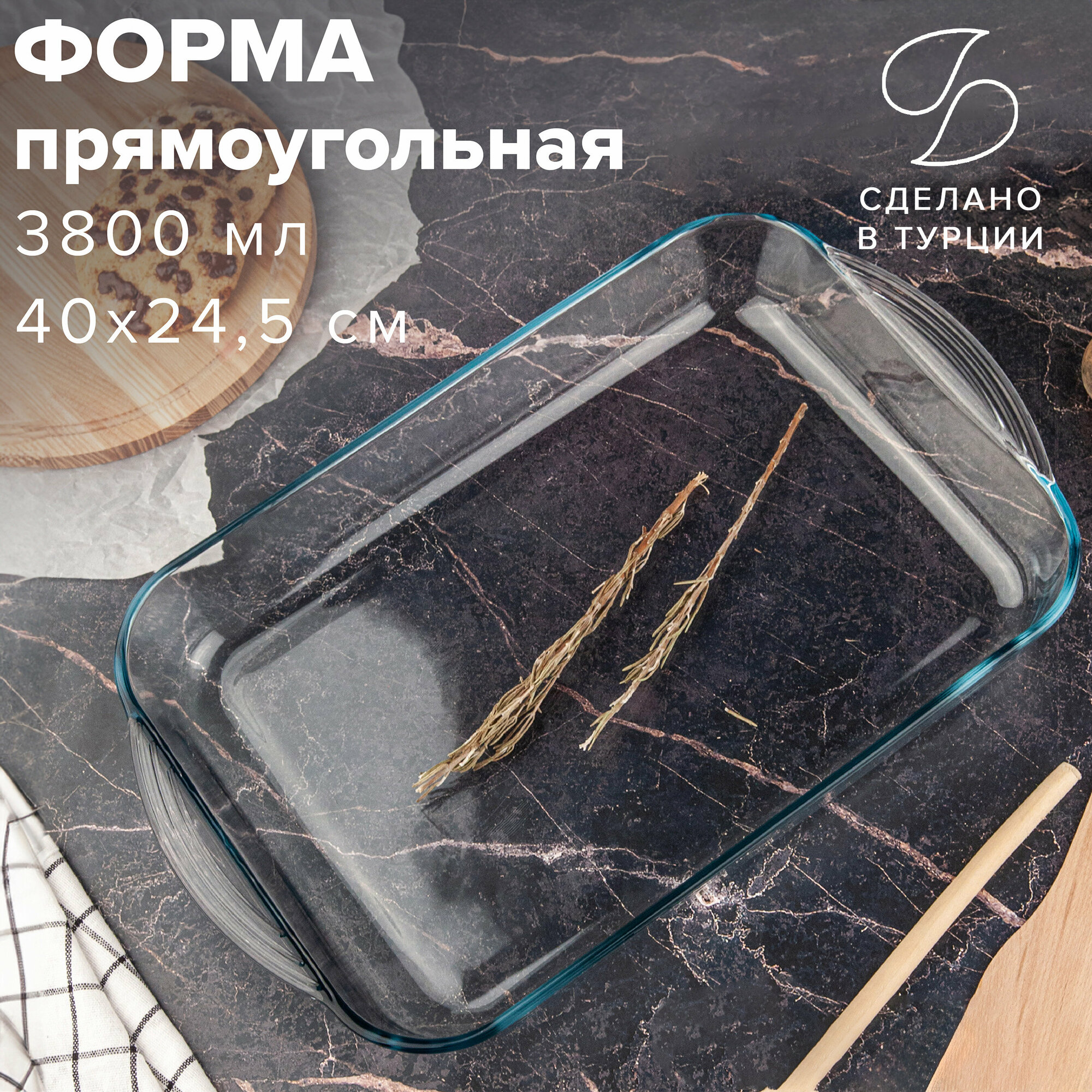 Форма для выпечки жаропрочная стеклянная прямоугольная 3,8 литра Borcam 59124 лоток прямоугольный 40х25х6 см в подарочной коробке